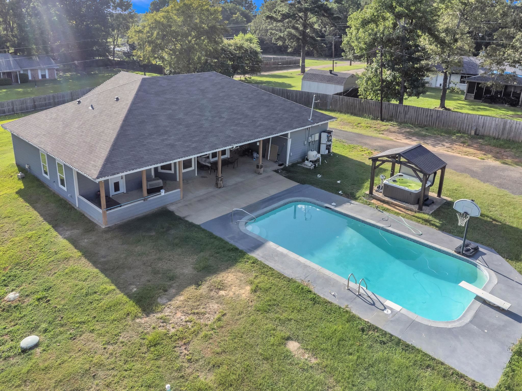 | Spacious 5-bedroom, 3.5-bath home situated on 1.26 acres with numerous upgrades and bonus features. Ideal for entertaining, hobbyists, or multi-use living with multiple outbuildings and utility setups. Key Features • Pool & Spa: In-ground pool and hot tub; pool was redone in 2020 with new plumbing, skimmers, and sandblasted finish. Can be heated. • HVAC: New A/C unit and ductwork installed in 2024 (less than 1 year old) • Workshop: 40x30 detached shop built in April 2024 • Mancave: Separate mancave with loft, own electrical service • Utilities: 2 water meters; 3 separate electrical meters (house, shop, mancave) • Outdoor Living: Covered patio plumbed for outdoor kitchen; gas available • Fencing: Fully fenced backyard with fencing replaced in 2020 This property offers tremendous value and versatility with its spacious layout and extensive updates. The outdoor entertaining area, detached workshop, and separate mancave make it perfect for a variety of lifestyles. Home does need some TLC—bring your vision and make it your own! | |