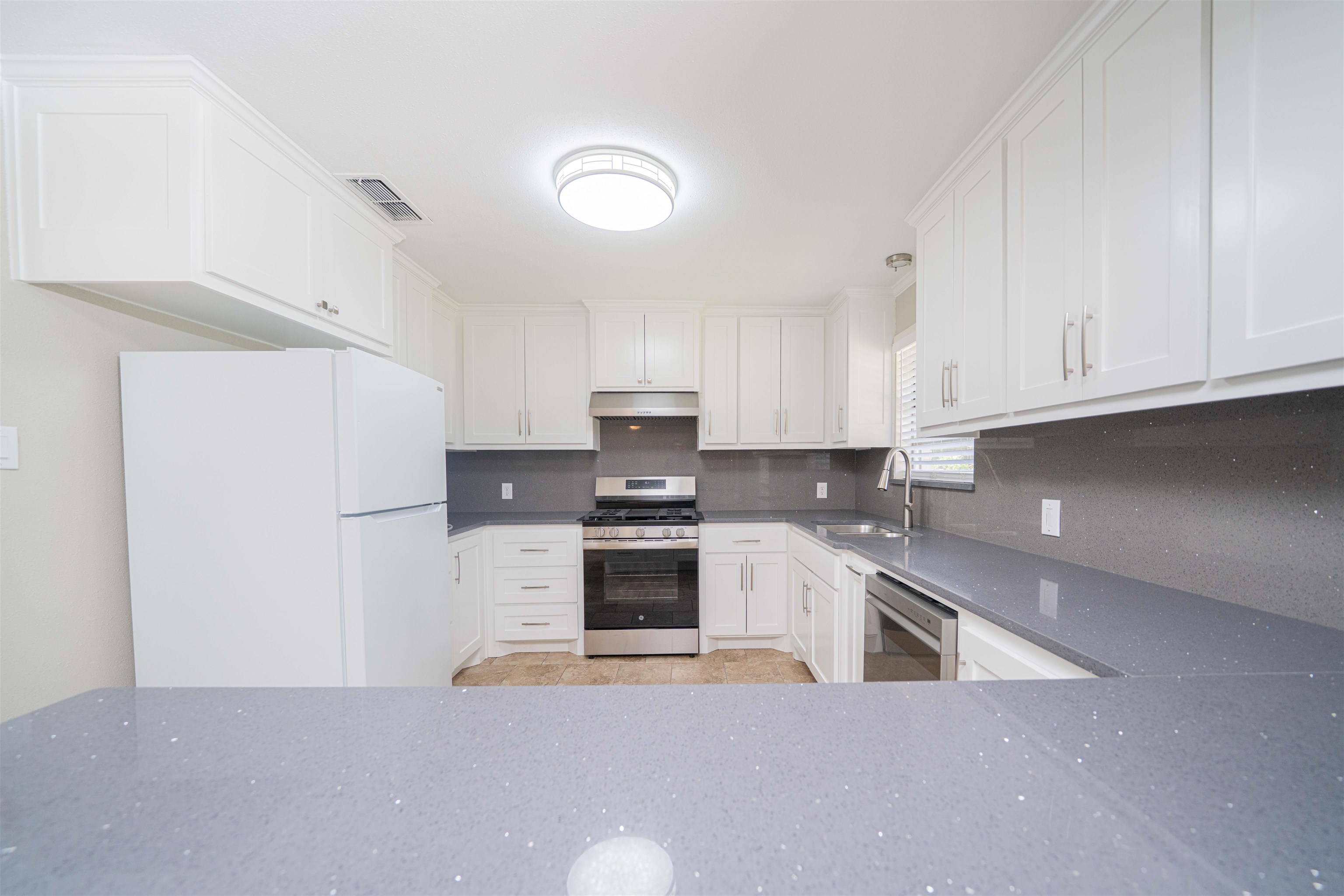 | MOVE IN READY BRICK HOME IN QUIET NEIGHBORHOOD! 3/2/2 brick home plus formal living or large office, new driveway, updated both bathrooms, one bath has double sinks with new granite, new cabinets, new updated master bath with walk-in shower, kitchen recently totally updated with microwave, new gas stove with electric oven, new cabinets, New flooring, no carpeting in all of home, fenced in backyard with patio and storage building. Entire home recently painted inside & outside. Nice big laundry room off carport with plenty of storage not included in square footage. | |