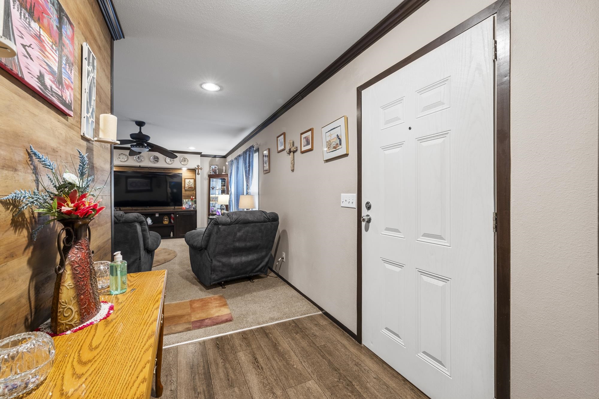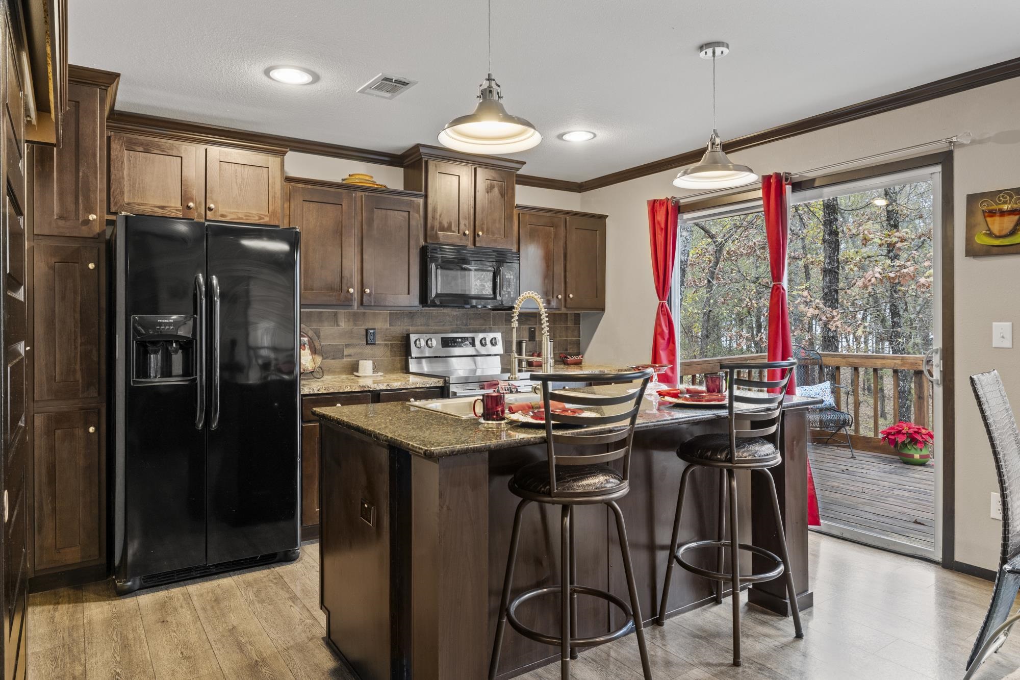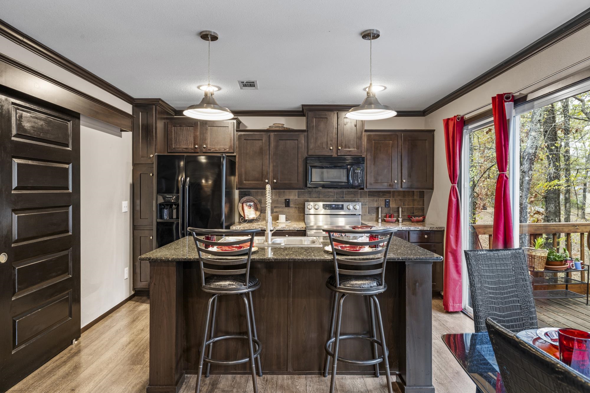 | Welcome to 2020 Indian Gap in the sought-after Holiday Villages on Lake Fork, a gated, amenity-rich community designed for relaxed lake living. This beautifully maintained 2016 manufactured home offers 3 bedrooms and 2 bathrooms, showcasing a meticulously clean interior and an inviting open-concept layout that blends the kitchen, dining, and living areas. The kitchen features a large countertop island, a new high-end oven, and a pantry accented by a stylish barn door for an updated, modern aesthetic. The split primary bedroom provides added privacy and opens into a stunning master bathroom complete with a large tiled walk-in shower, an oval freestanding soaking tub, a generous countertop with double sinks, and plenty of cabinet space for storage and organization. Out back, a spacious porch overlooks the waterfront, offering peaceful views and a short walk down the steps to the shoreline of Lake Fork. Beside the porch, a cozy fire pit and seating area create the perfect spot to unwind or entertain under the East Texas sky. The property also includes a 1-car carport with additional storage. Holiday Villages on Fork offers gated security, a community boat ramp and fishing pier, a clubhouse and pool, RV hookups, parks, picnic areas, and regular community events that give the neighborhood a welcoming, close-knit feel. Priced at $236,975, this charming lakeside retreat offers comfort, convenience, and the serene beauty of Lake Fork—ideal as a getaway or a full-time residence. | |