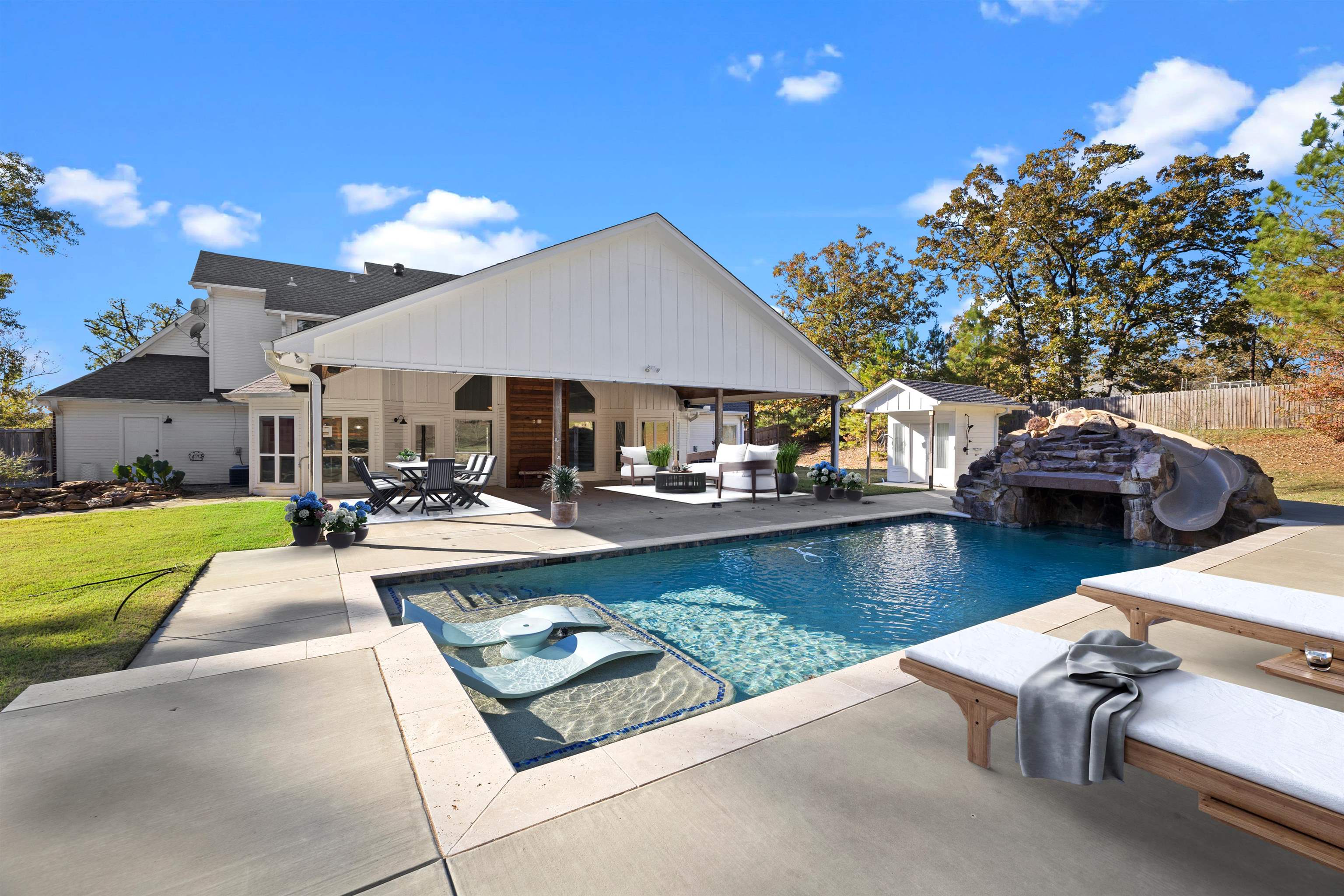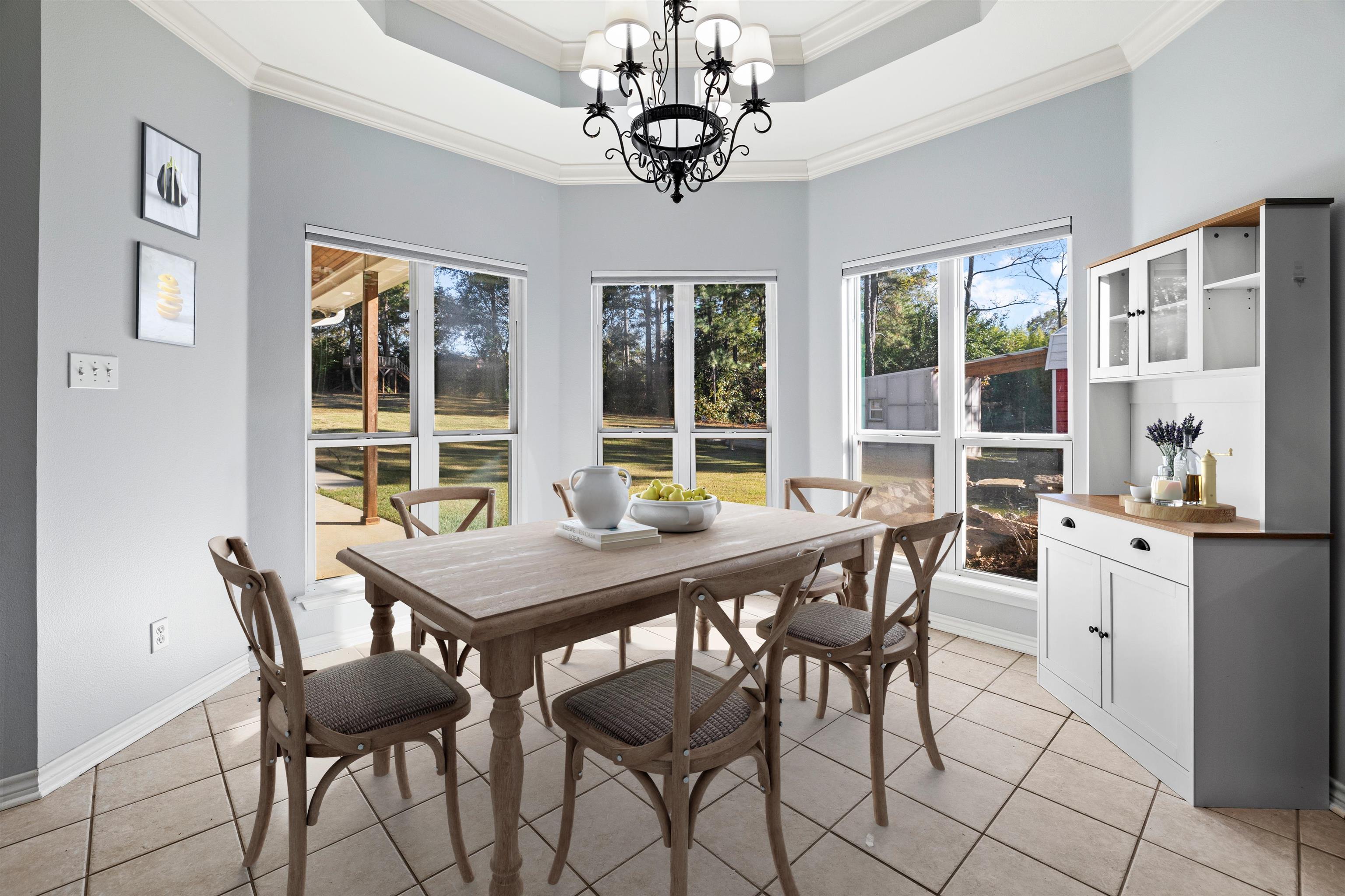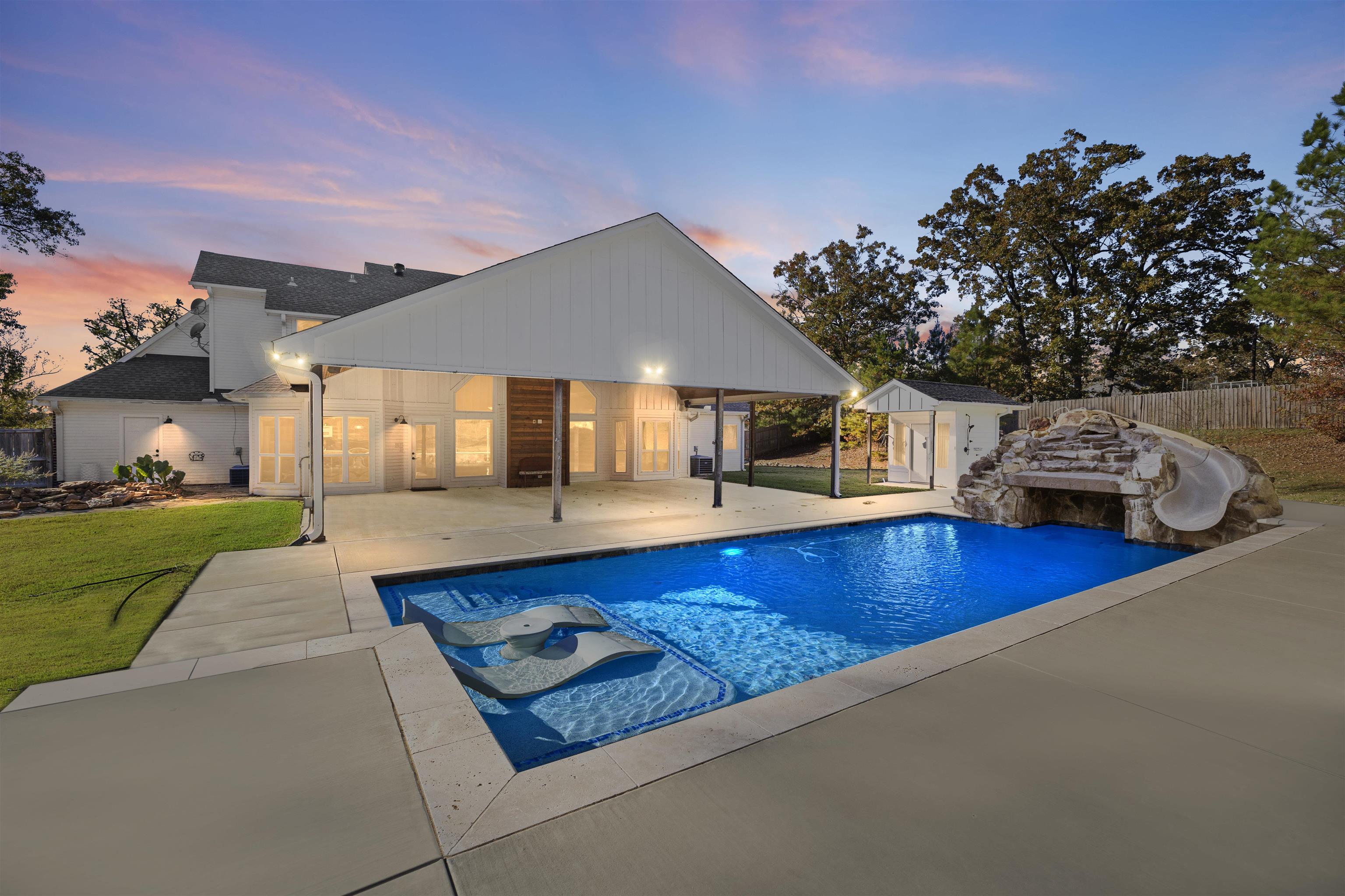 | Spacious 5 bedroom, 4 full bath, 2 half bath home with pool, pavilion and 1.39 acre lot in the Gladewater area. This custom layout features a downstairs primary suite with granite vanities, jetted tub, separate shower, large walk-in closet and great storage. Off the entry is a formal living room, a formal dining room and a flexible space that can serve as a bedroom, office or hobby room. The kitchen shines with granite counters, tile backsplash, island, stainless steel appliances, double ovens, smart convection microwave, breakfast area, walk-in pantry and a nearby laundry room with sink and ice maker. Upstairs offers three spacious bedrooms, each with its own en suite bathroom, ceiling fan and generous closet space. The home is all electric and equipped with two HVAC units and two tankless water heaters for comfort and efficiency. Three-car garage with an exterior door to the backyard. The backyard is an entertainer’s dream—oversized covered pavilion with half bath and outdoor shower, full sprinkler system, koi pond, greenhouse area, raised garden beds and a 20x12 storage building just a few years old. Pool service contract and sprinkler maintenance are already in place for easy ownership. Perfectly located between Longview and Tyler for easy commuting, this home combines privacy, outdoor living and comfort on a beautiful East Texas homesite. | |