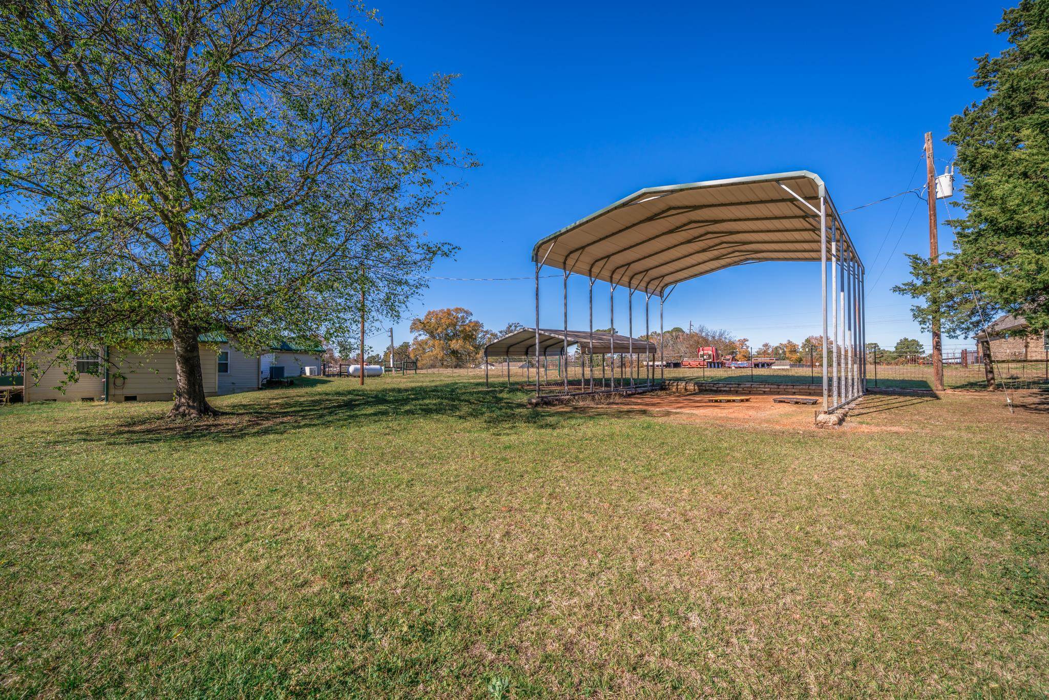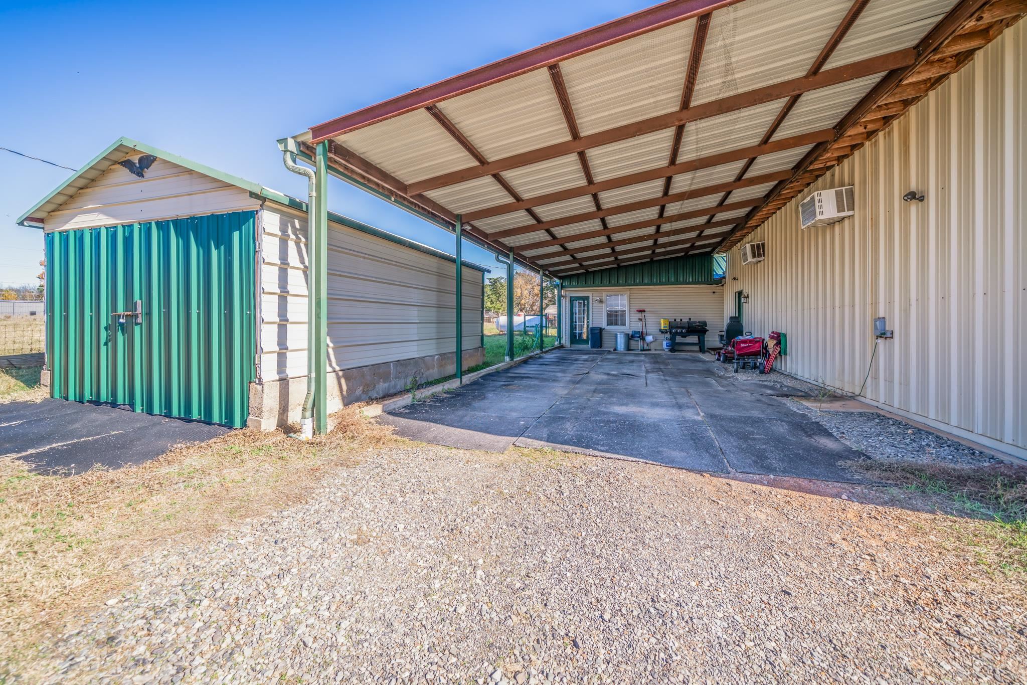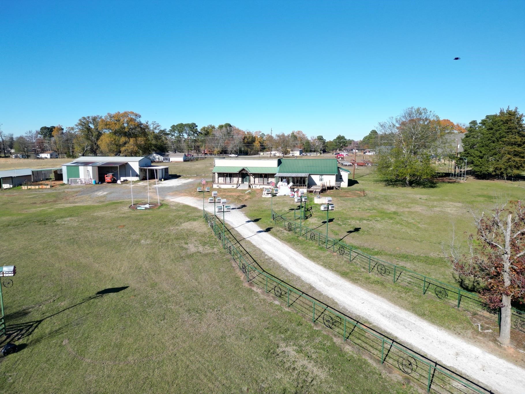 | Gregg County-Lakeport area opportunity on 8.6+/- acres. This 2432 SF rustic ranch home with shop, outbuildings and fenced acreage has many possible uses. The home has 2 bedrooms and 2.5 baths. The home also includes an 1100 SF open multipurpose room with 1/2 bath. This large space could be used for large family gatherings, church activities, game room or even a business store front. The home has a newer 25KW Generac generator (4 years old) that is fueled by a 500 gallon leased propane tank. The aerobic septic system is within 5 years of being installed. The HVAC system was updated in 2023. There is also a newer storm shelter. There is a 28'x50' shop with additional covered parking and storage. Water is available to the shop and there is a separate electric meter. Next we have 2 storage containers that are covered by a metal roof. This has been used to store hay and work equipment. There is another large metal covering and shed for storage. The shops, containers, sheds and coverings make this a great business location. This property could be turned in to an RV Park and use the out buildings for a business or rental space. This property is fenced and cross fenced. One of the separate pastures has 2 sheds that can be used for an RV, farm equipment or animal shelter. This property is very close to Lake Cherokee and just minutes to the Gregg County Regional Airport, Lakeport, Tatum, I-20, Henderson, Kilgore and Longview. | |