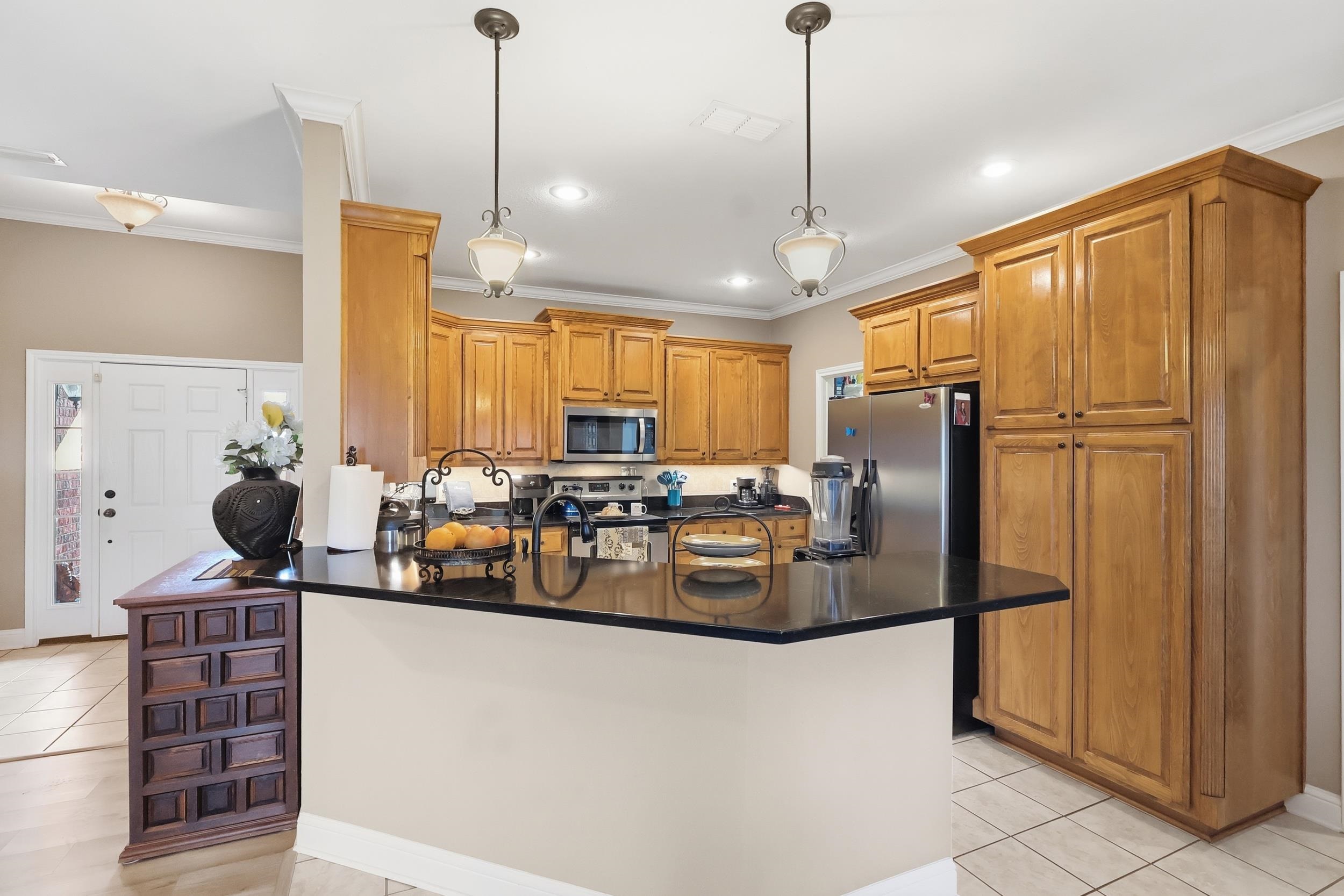 | This inviting 4-bedroom, 2-bath home is nestled in a well-established neighborhood and offers a comfortable blend of style and functionality. The kitchen features beautiful quartz countertops with ample workspace, perfect for everyday living and entertaining. The split master layout provides added privacy, with the spacious primary suite boasting a relaxing jacuzzi tub and a separate walk-in shower. The main/guest bath has a shower/tub combo. The living area is warm and welcoming, highlighted by a stunning stone fireplace that serves as a focal point for cozy gatherings. Step outside to enjoy the large backyard, ideal for outdoor activities, pets, or future additions. A convenient storage building adds extra space for tools, hobbies, or seasonal items. This home combines thoughtful design with desirable features, making it perfect for both relaxing and entertaining. Another great advantage is there is a Impact Resistance Roof that some insurance companies may give a discount on your policy. Let's not delay on making this your new home. | |