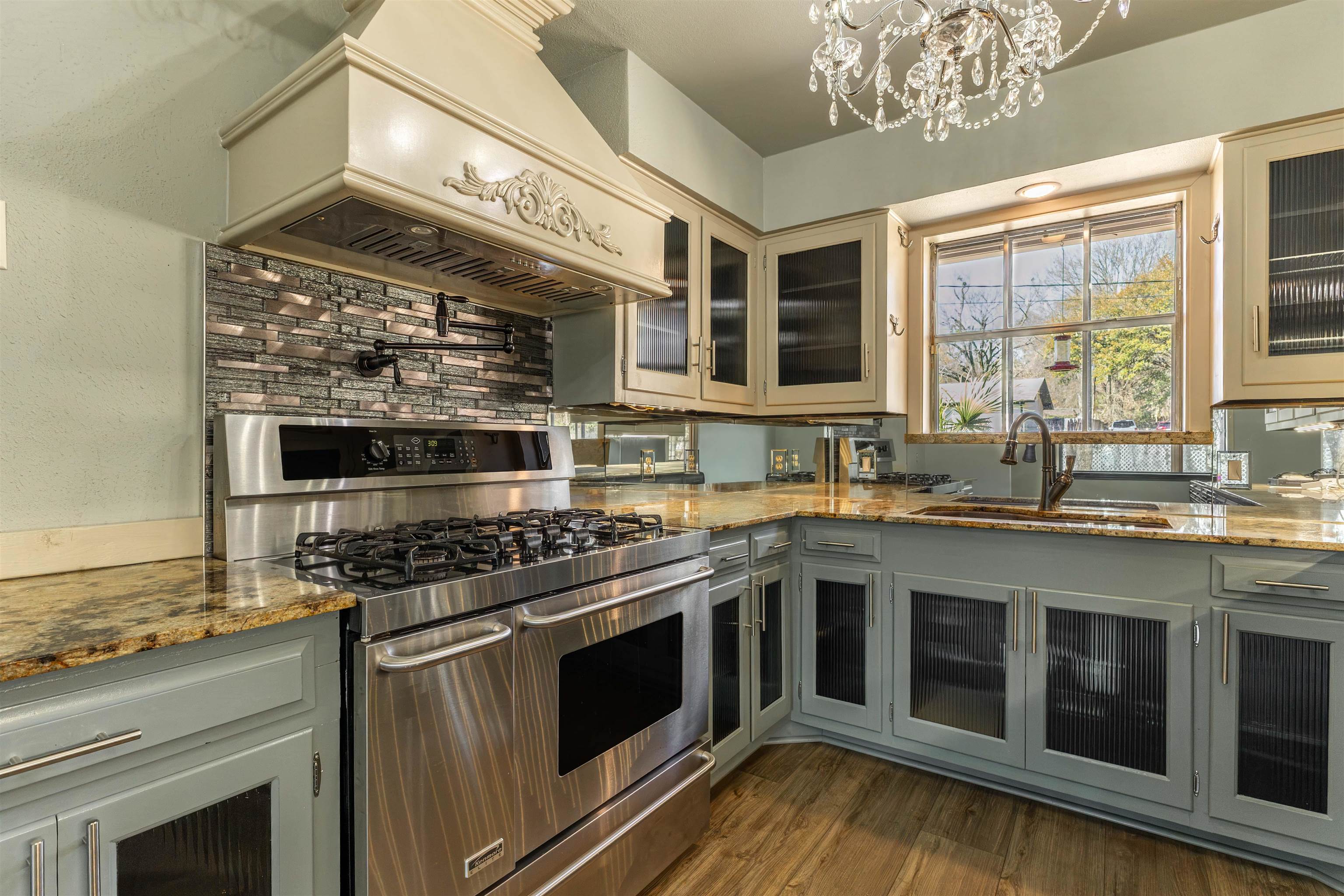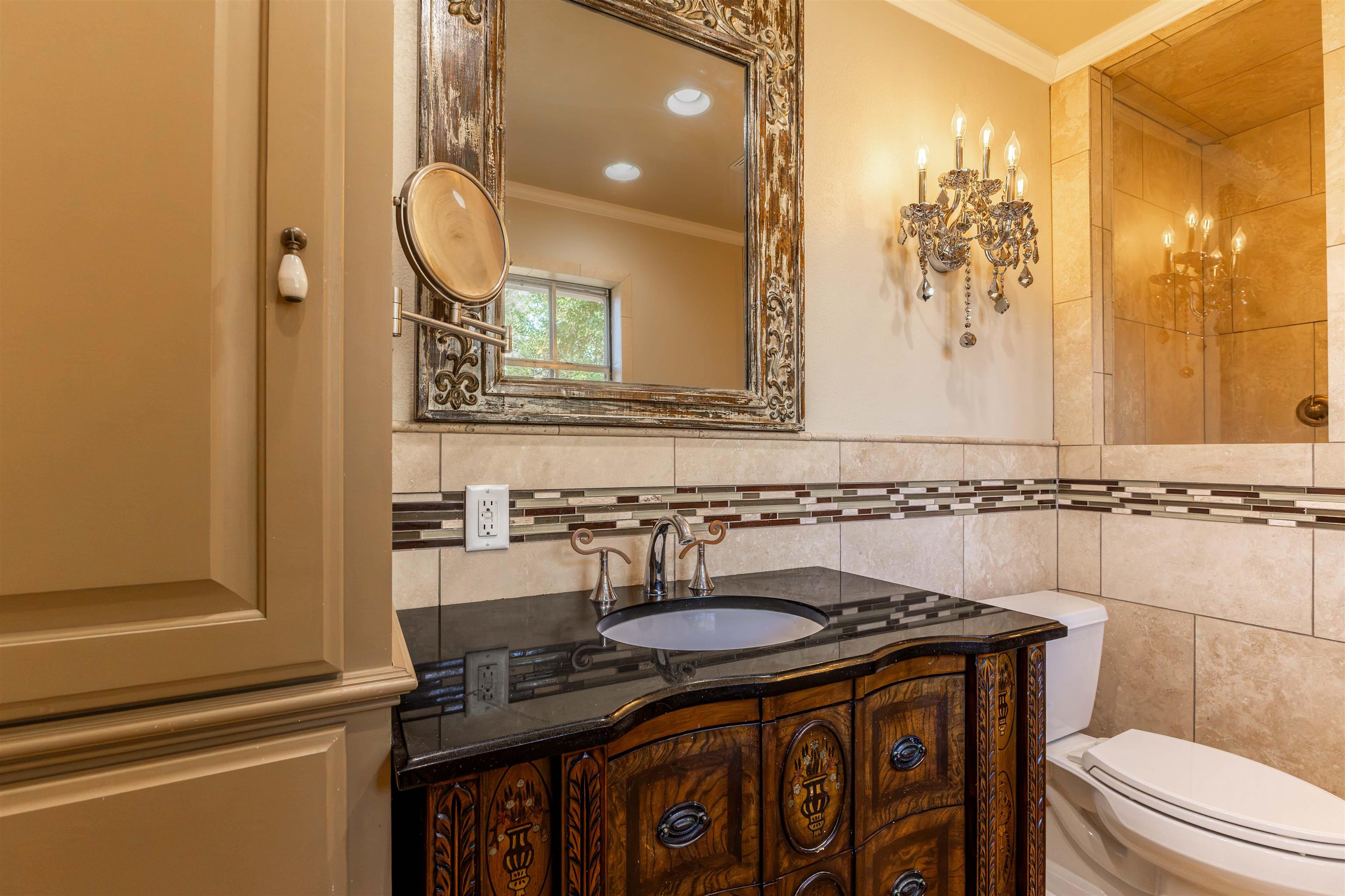 | If you’re looking to downsize without sacrificing space or style, this fabulous home is a must-see with a fresh NEW coat of interior paint! From the moment you step inside, you’ll be captivated by the breathtaking mirrored entry that sets the tone for the designer details found throughout. This home offers 2 generously sized bedrooms and 2 spectacular bathrooms, including a luxurious primary suite with a spacious walk-in shower. Natural light pours in through the abundance of windows, creating a bright and inviting atmosphere. Elegant touches such as crown molding, stunning chandeliers, and a beautifully appointed fireplace add warmth and sophistication to every room. The kitchen is thoughtfully designed with both beauty and function in mind, featuring a pot filler above the oven and convenient cooking drawers—perfect for the home chef. You’ll also appreciate the ample storage found throughout the home. For added peace of mind, the home is equipped with a whole-home generator that automatically kicks on if the power goes out. Step outside to a huge backyard where a small creek runs along the back property line, offering a peaceful and picturesque setting. This home is filled with designer updates everywhere you look—truly move-in ready and ready to impress! | |
