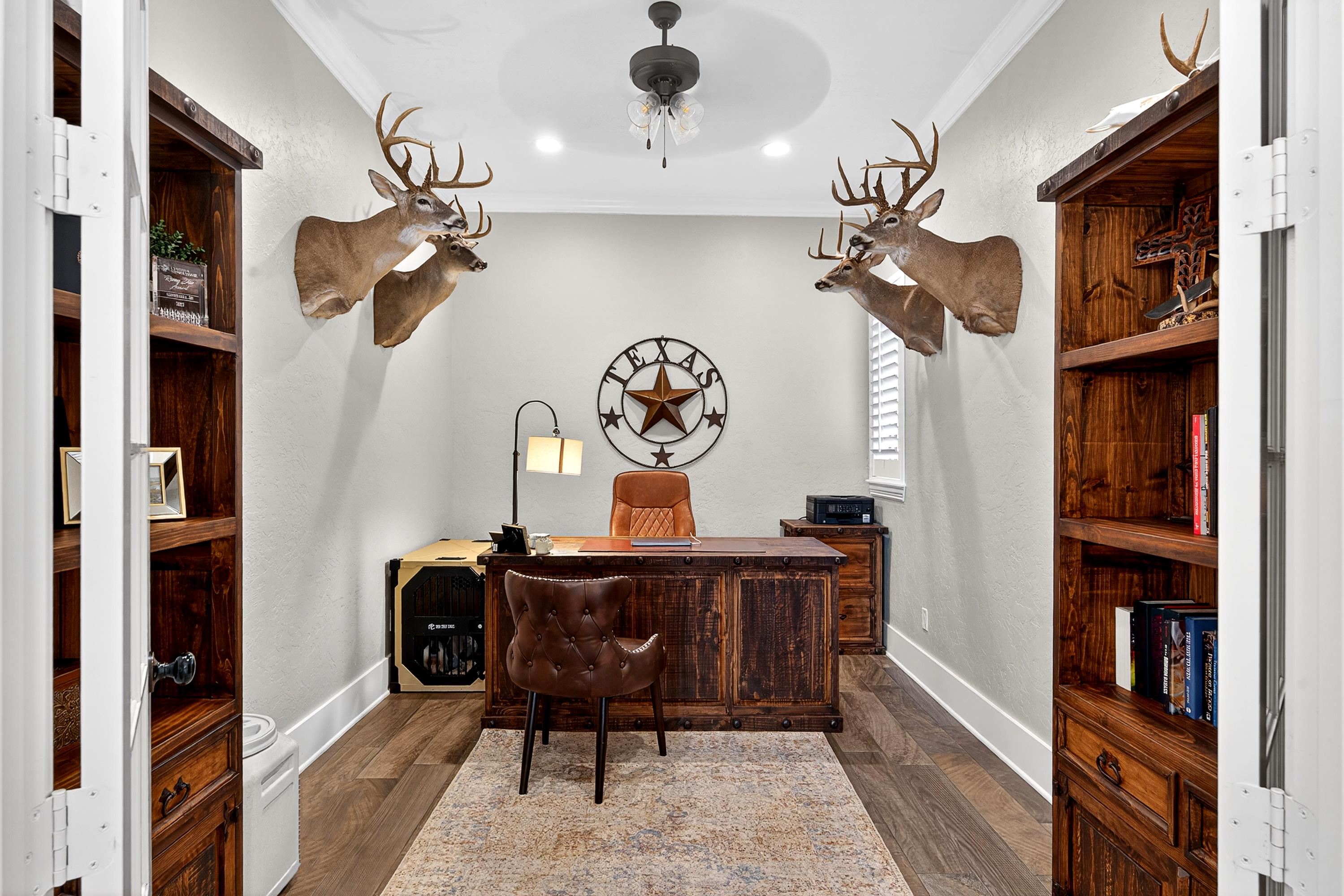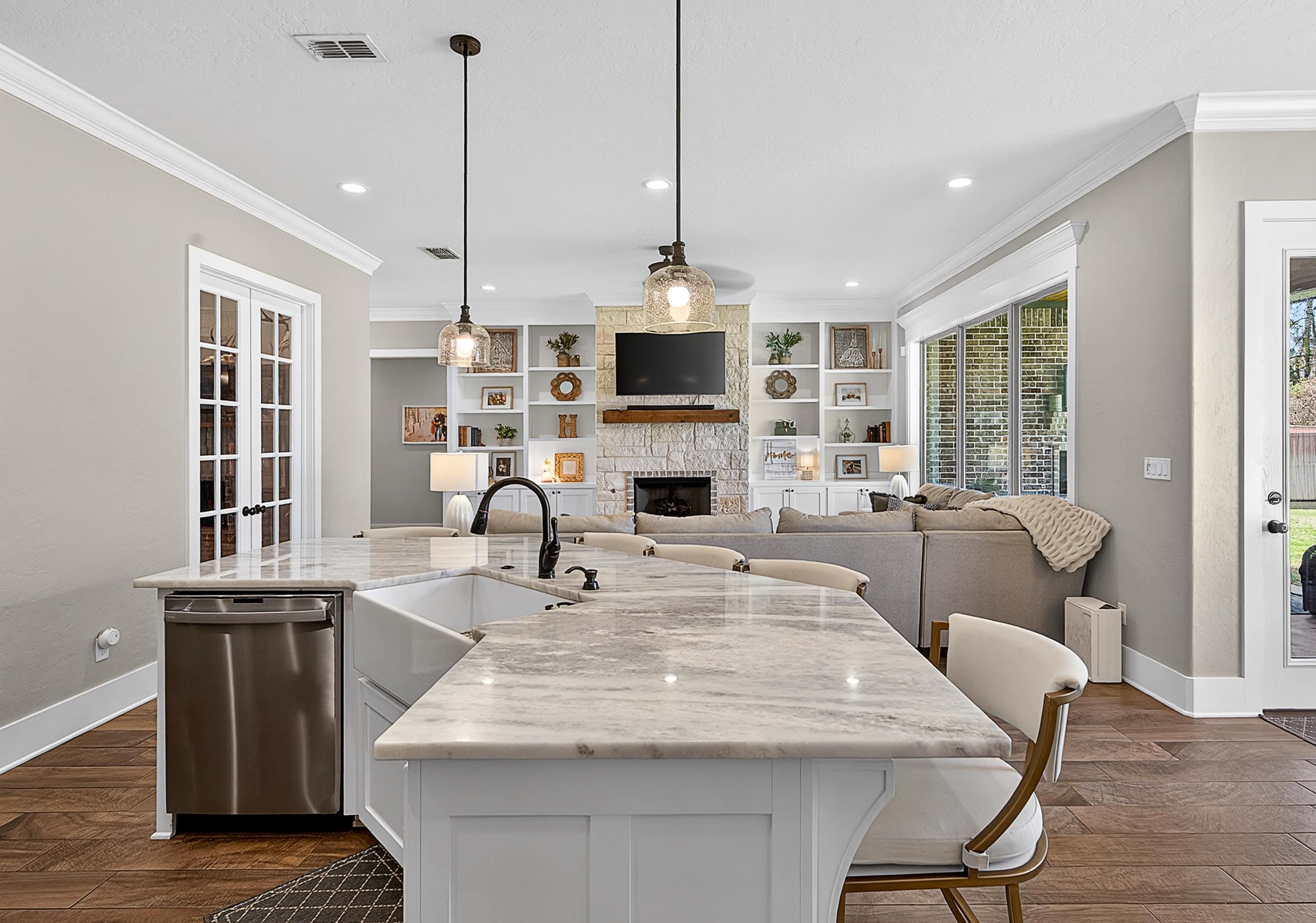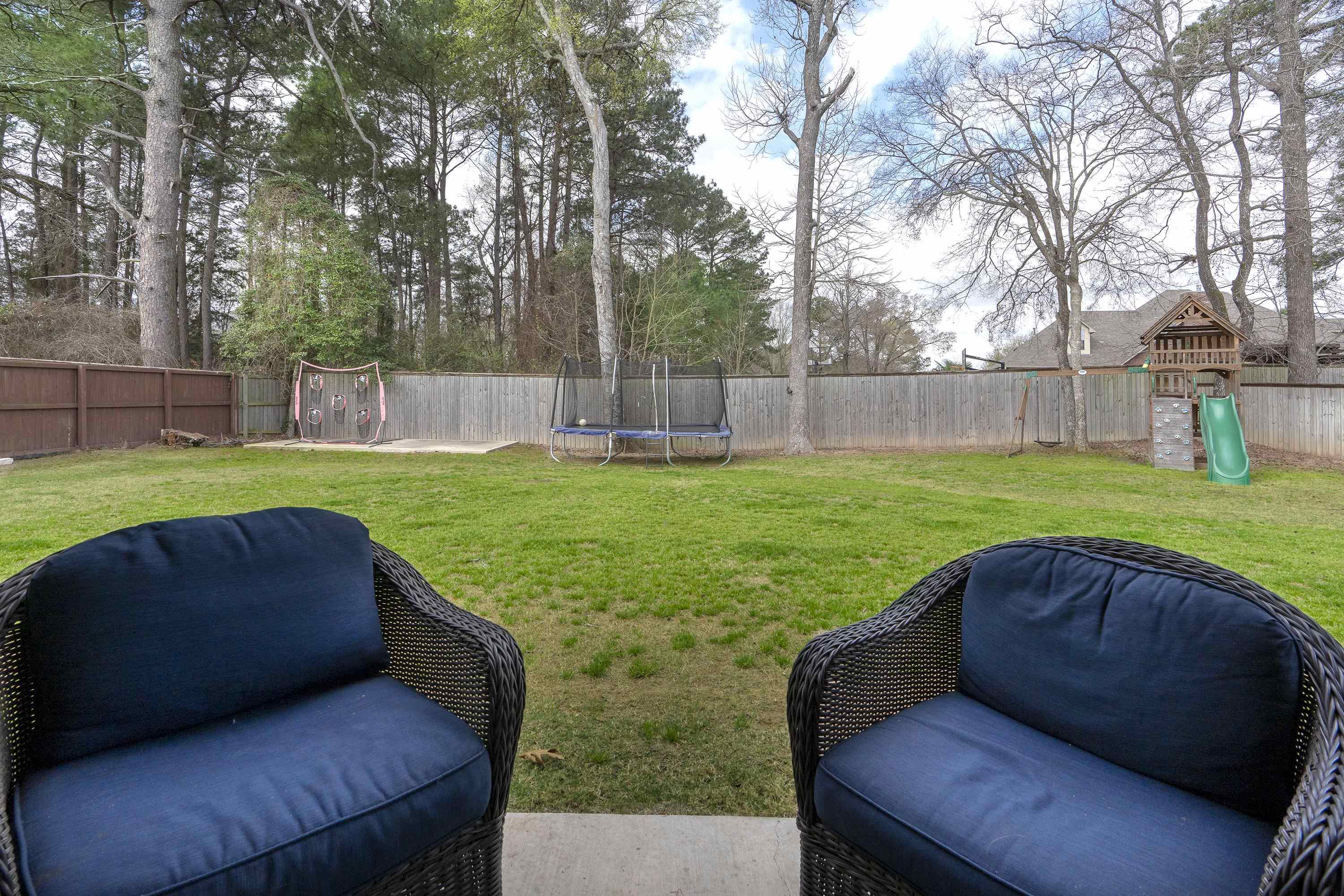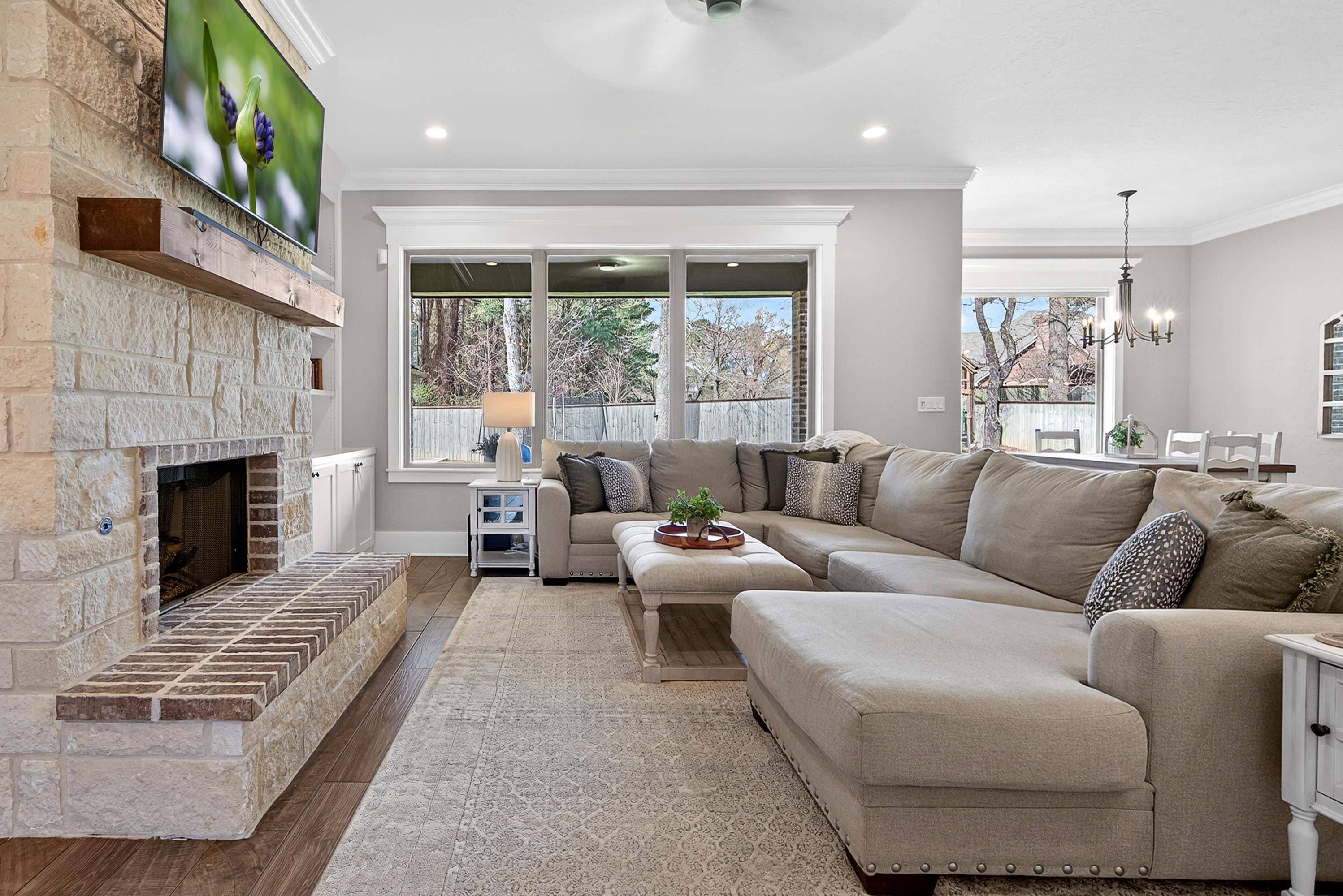 | Situated on an interior lot in Saddle Brook, this pristine traditional is better than new! Flexible floor plan includes four bedrooms and a large study with glass doors for privacy. The study could also be used as a playroom, second living or formal dining. Floor to ceiling built-ins flank the fireplace in the open living space. Large windows across the back of the home pour natural light. The island kitchen is grounded by warm wood tones on the island & hood. Primary suite features a shower and soaking tub. The spacious closet adjoins the laundry room for added convenience. The laundry opens to the mud room area on the other side. Covered patio with fireplace overlooks large fenced yard. Fantastic location in the heart of Hallsville, it's the perfect place to call home. | |