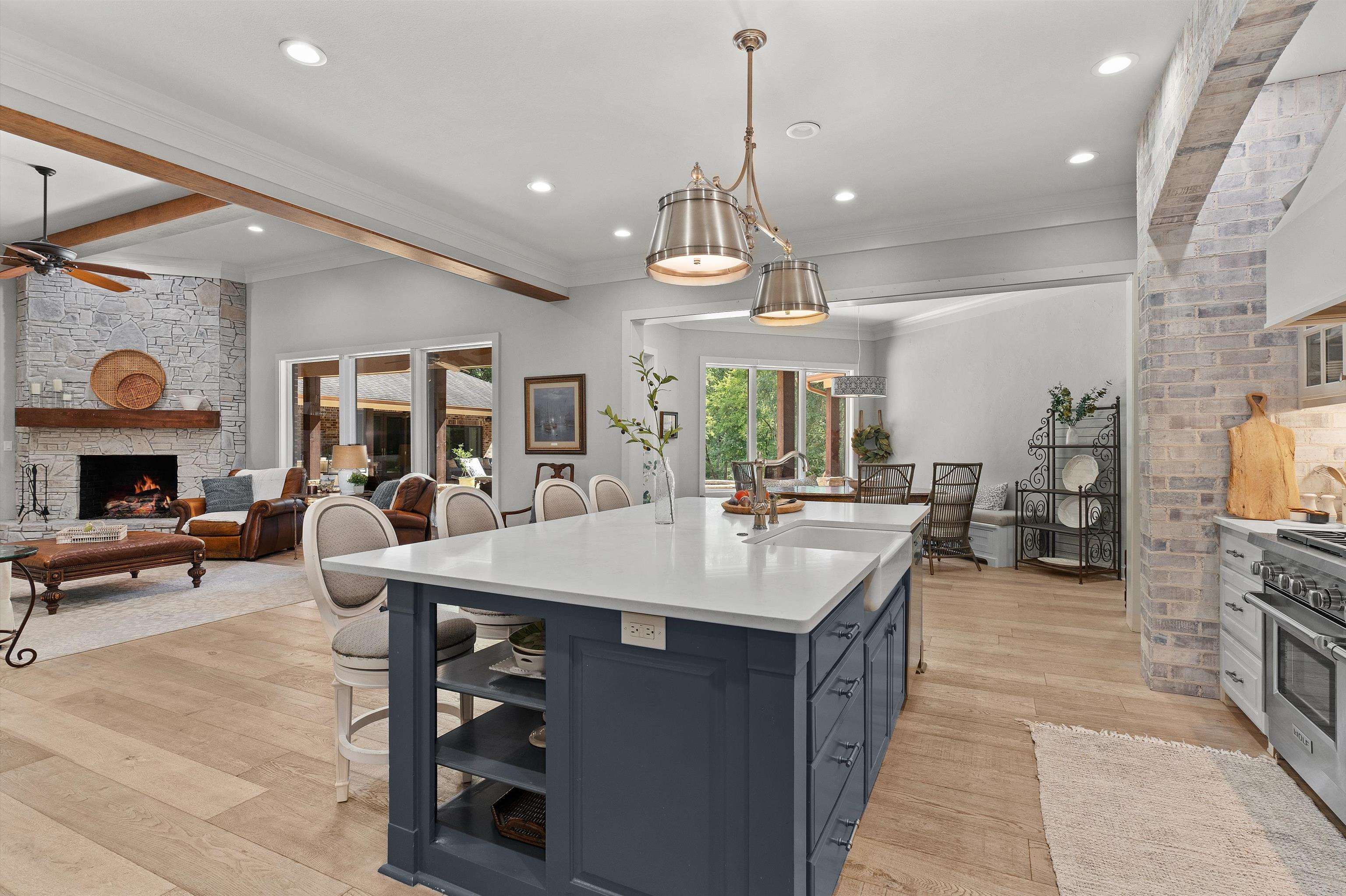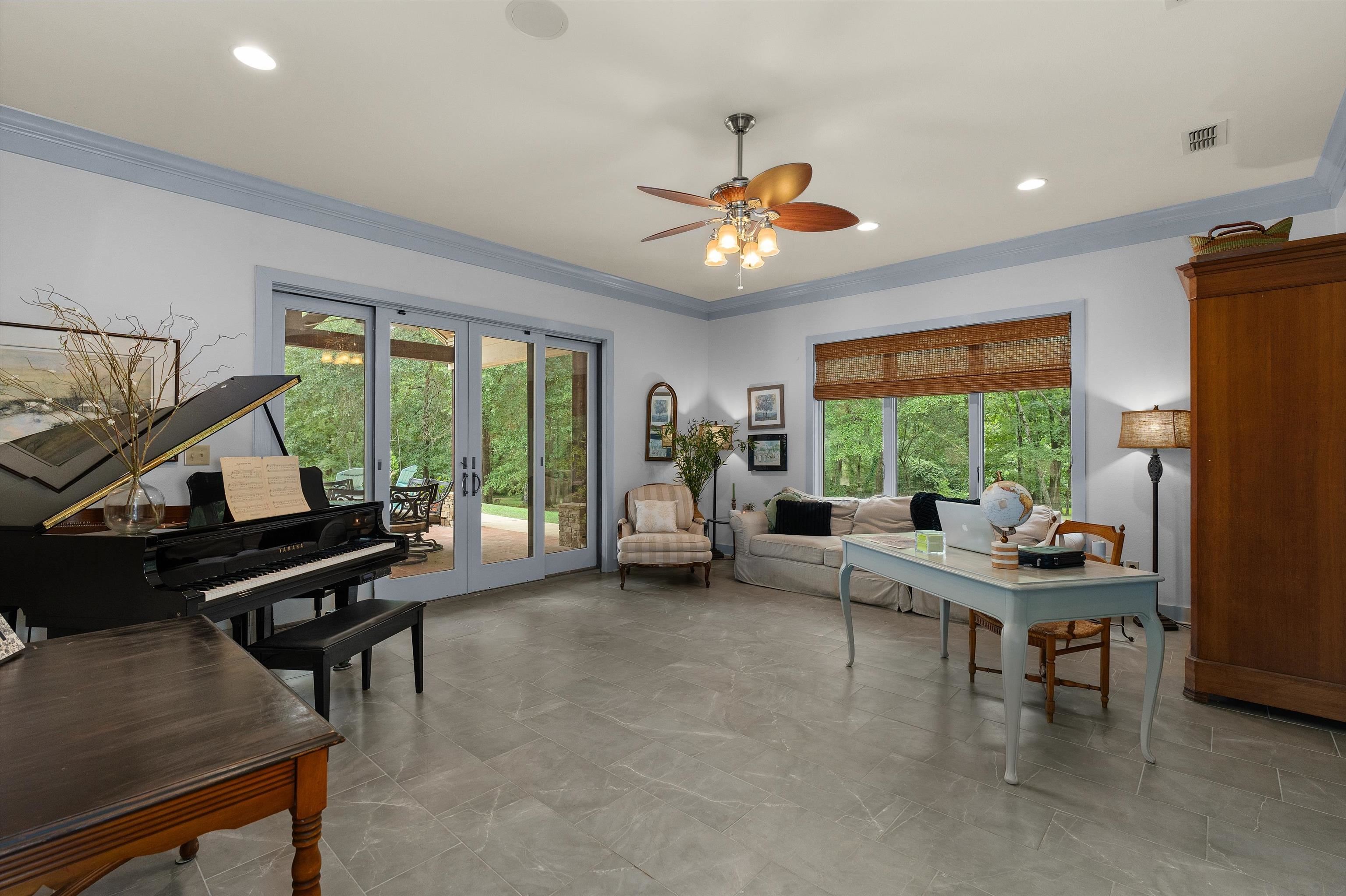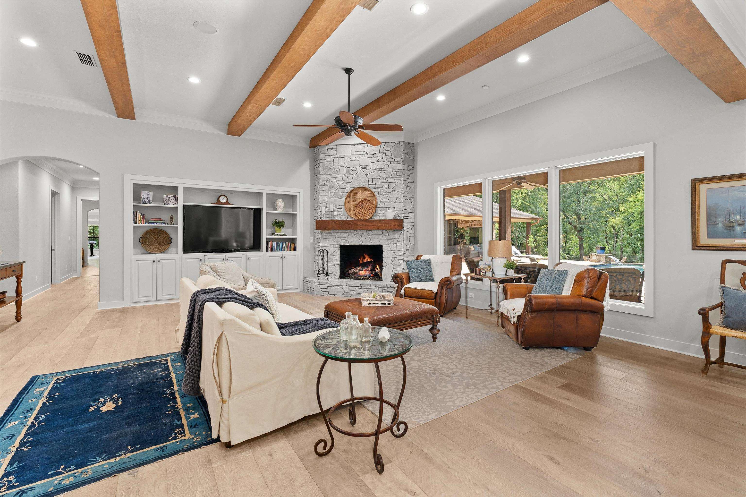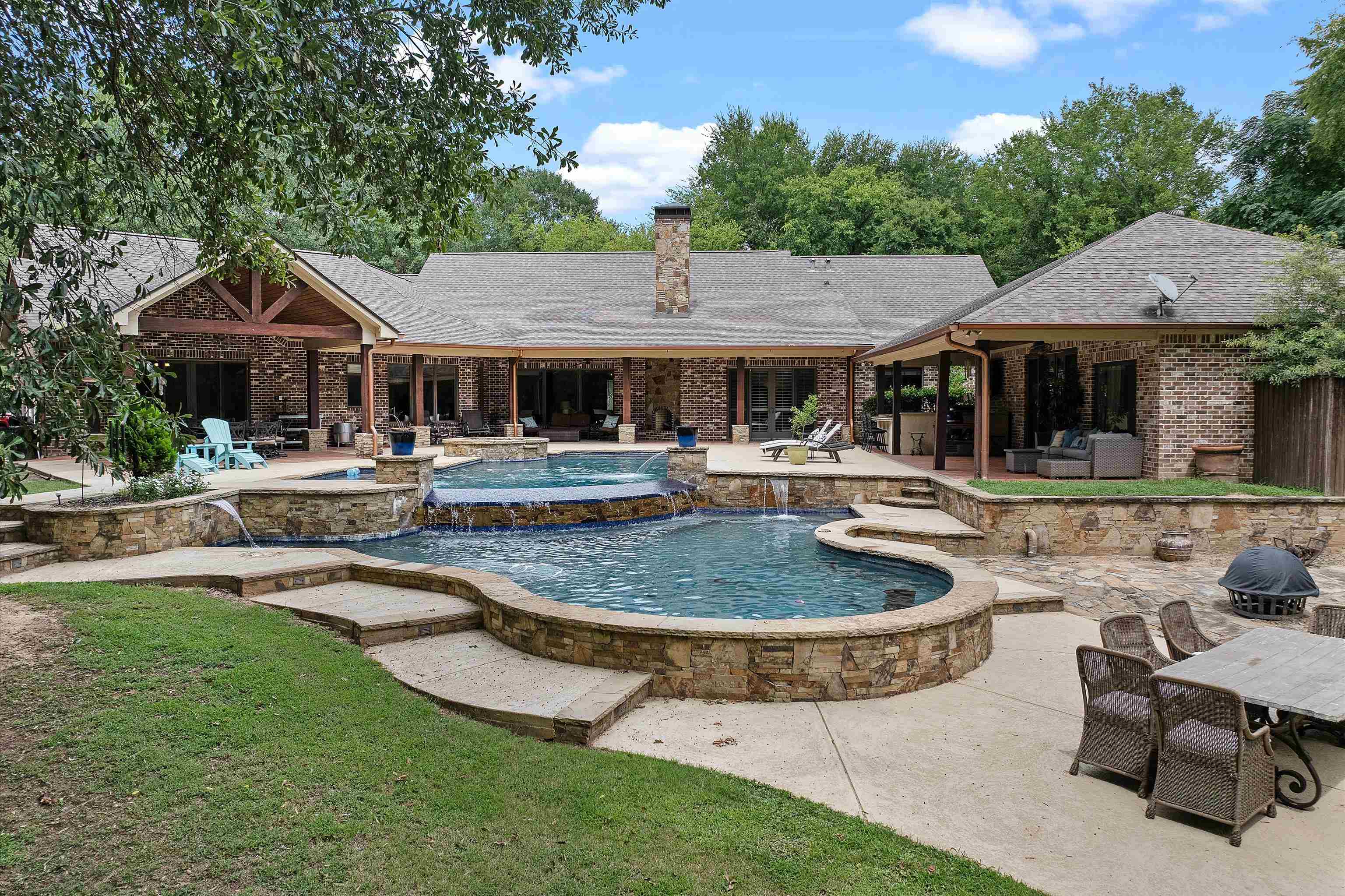 | Luxury estate on over 20acres in the heart of Carthage! Discover unparalleled privacy and sophistication in this extraordinary home perfectly tucked away on beautifully wooded acreage offering complete seclusion. A grand gated entrance sets the tone for this remarkable estate where a long, winding circle drive meanders through towering trees and beautifully wooded acreage before revealing the stunning residence. This property combines elegance, privacy and convenience like no other. The main house boasts appx 5400 square feet and showcases the open concept living, kitchen and breakfast areas complemented by a separate formal dining room for elegant gatherings. All rooms are generously sized offering exceptional functionality. Featured here are 3 or 4 bedrooms, depending on personal usage, four full baths with one half bath, plus a large office with built-ins and an additional den with bonus room currently being used as an exercise room. The gourmet kitchen features double Wolfe ovens and gas cooktop with separate warming drawers. The primary bedroom has cathedral ceiling and opens into the expansive primary bath featuring oversized walk-in shower with dual shower heads and separate jetted tub in addition to two walk-in closets. Other features include the wine cove with decorative iron door and the butler's pantry. In addition, the separate guest/pool house has appx 1260 square feet and has a living room, kitchenette, bedroom and bath. Enjoy the outdoor oasis with multi-level pool with multiple waterfalls, outdoor kitchen, outdoor fireplace and numerous dining or seating choices! The pavilion is large enough to accommodate a competitive basketball game or serve as a large entertaining area. There is also a detached shop with overhead door as well as a pond! Whether you're hosting family, entertaining friends or just relaxing at home, this property offers it all! Your own private retreat just minutes from town! | |