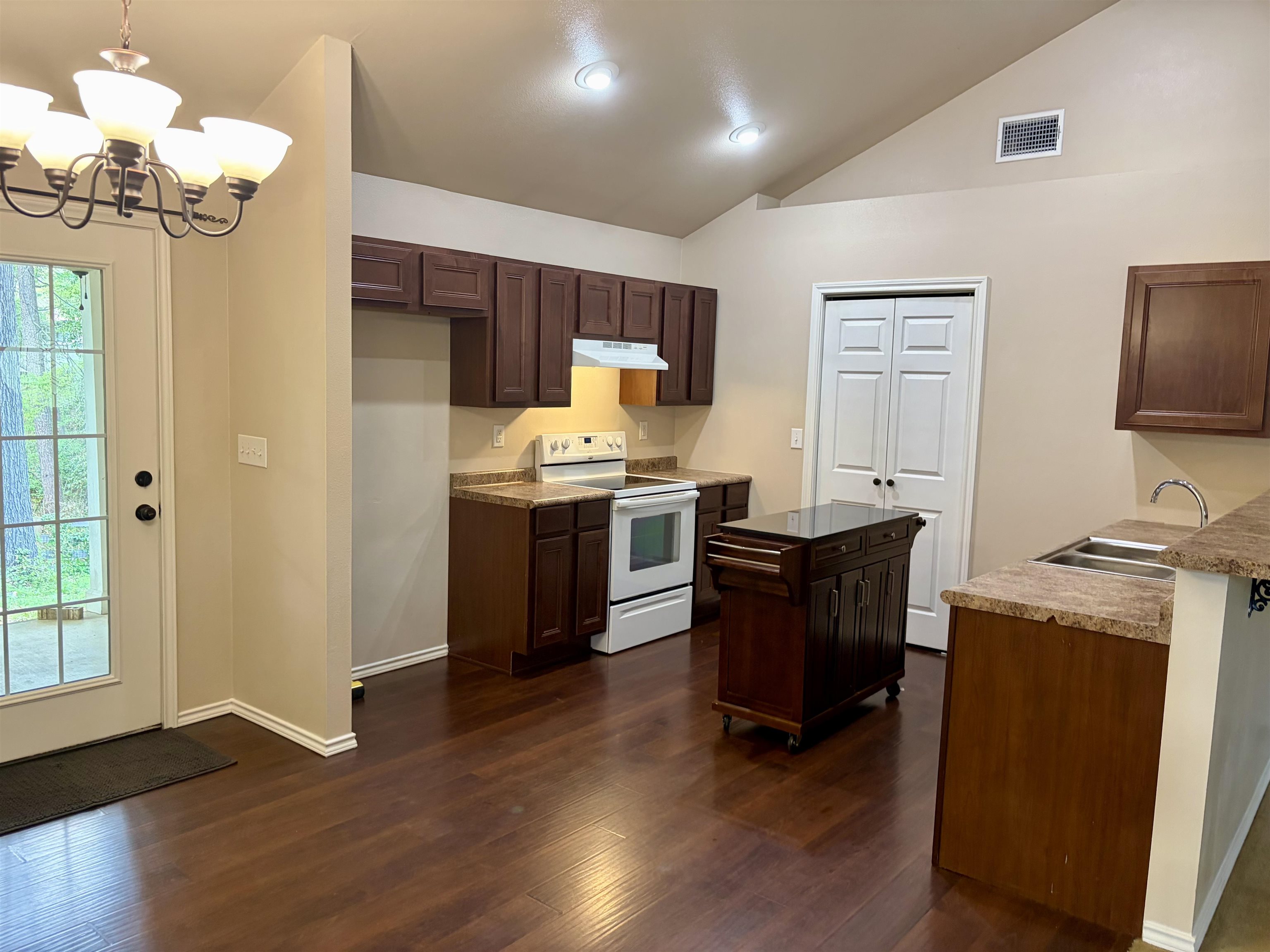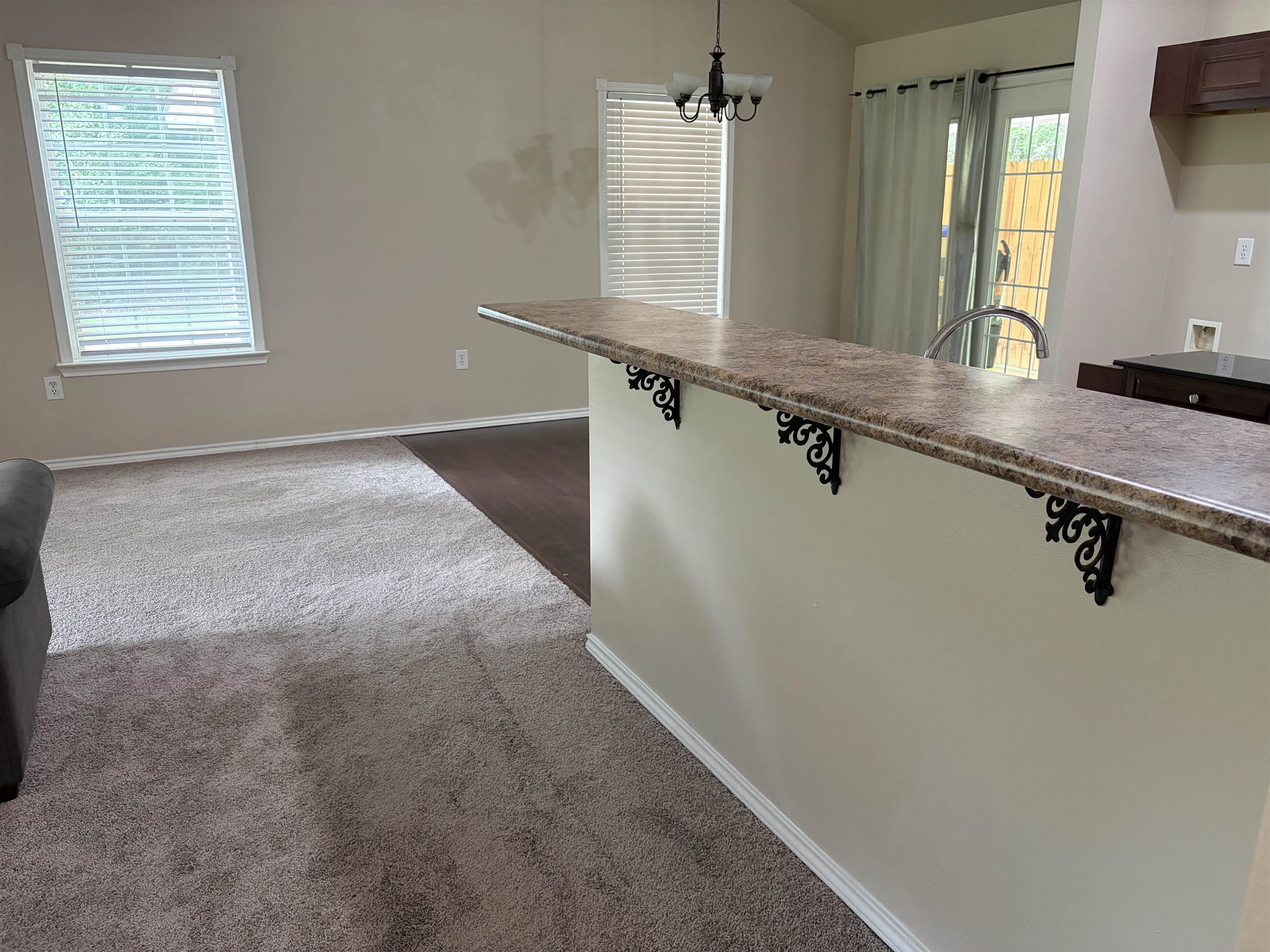 | Charming home situated on a .47 acre lot set off of the road with so much privacy that you forget you are in the middle of town. This home offers soaring ceilings in the kitchen/living area, brand new carpet, and spacious bedrooms with large closets. You will love the covered back patio that runs the length of the house with a fenced in backyard. Wake up and walk out of the master bedroom for your morning coffee and listen to the birds chirping and RELAX. | |