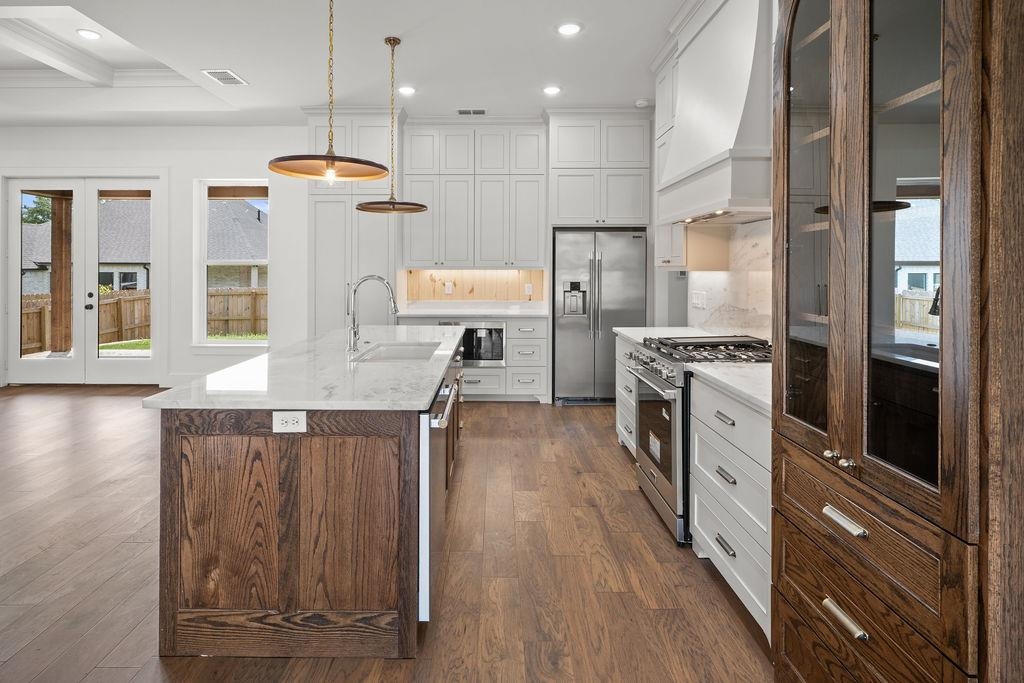 | Experience upscale living in the highly desirable Oak Creek community in Tyler. Crafted by Foundation Homes and Design, this stunning two-story residence offers 4 bedrooms and 3 bathrooms, thoughtfully designed with elevated style and functionality. The open-concept layout showcases a striking living room ceiling detail, creating an inviting yet sophisticated atmosphere. The generously sized primary suite is a true retreat, complete with a spa-inspired bathroom and a large walk-in closet. The main living space flows effortlessly into a chef’s kitchen featuring custom cabinetry, upscale finishes, and a discreetly tucked-away pantry. A separate guest suite ensures privacy and comfort for visitors. Step outside to a covered back porch with a beautiful tongue-and-groove ceiling—perfect for relaxing or entertaining. Situated within the prestigious Oak Creek neighborhood, residents enjoy convenient access to Tyler Athletic & Swim, the scenic Legacy Trail, and well-maintained community sidewalks. Ideally located near everything Tyler has to offer, this exceptional home blends luxury, comfort, and convenience. Don’t miss your chance to make it yours. | |