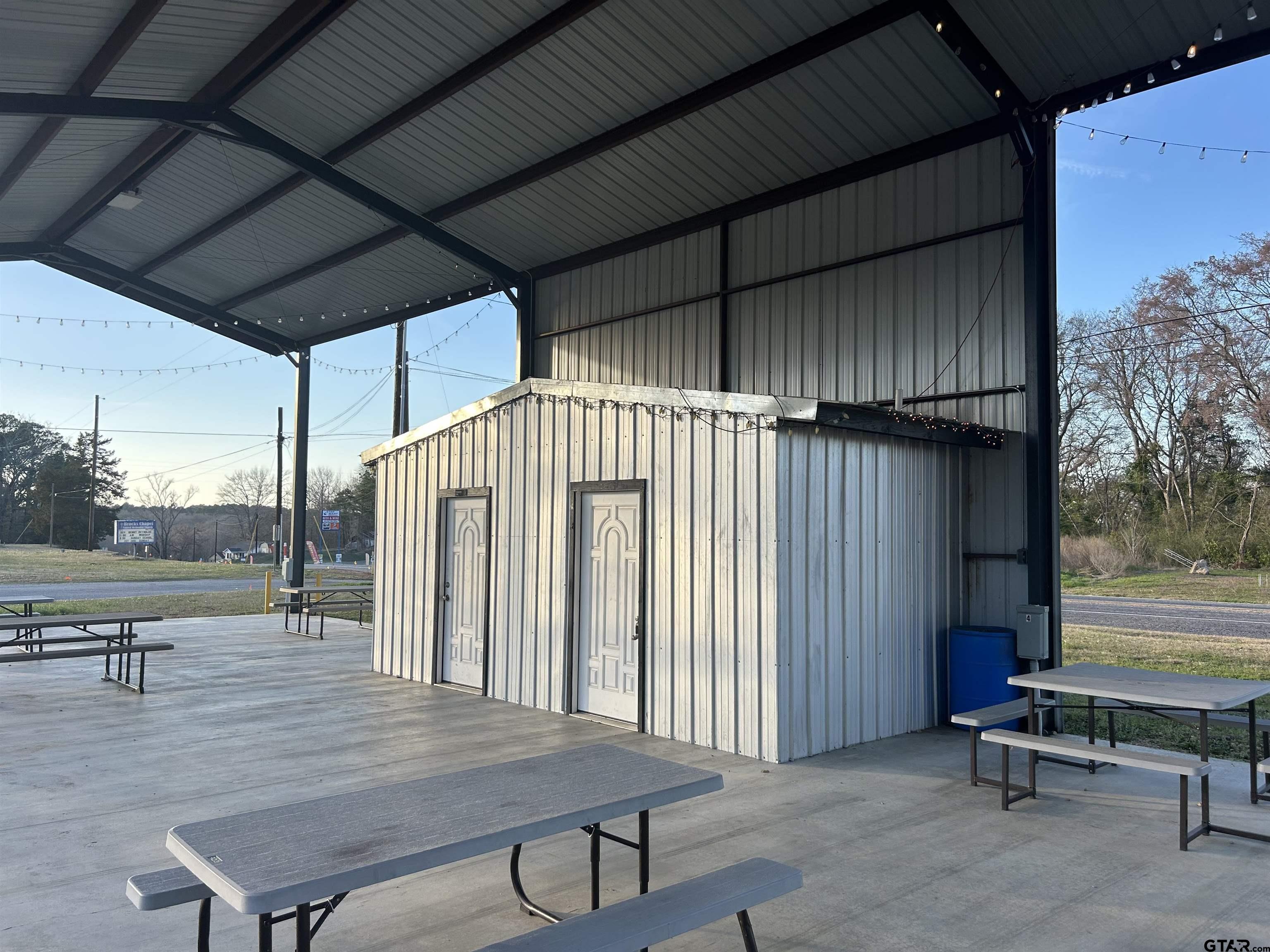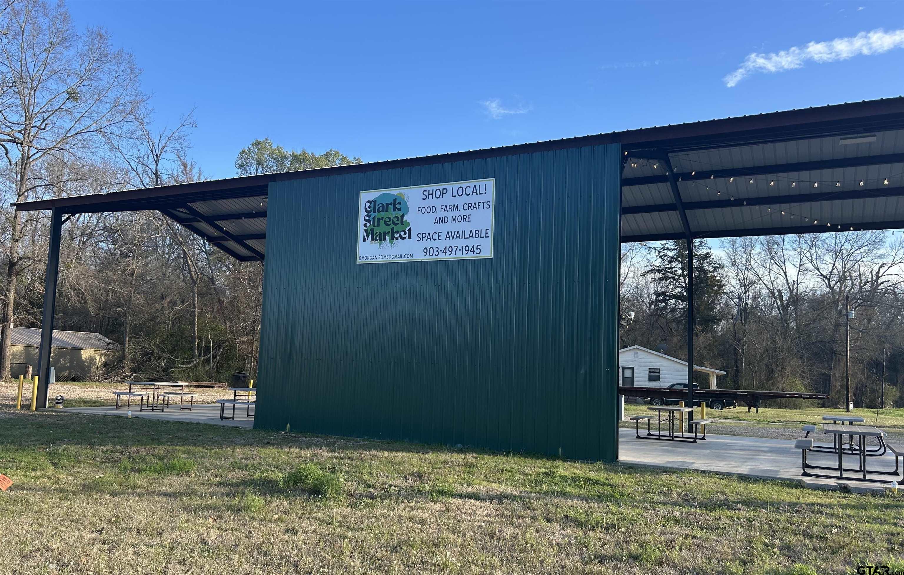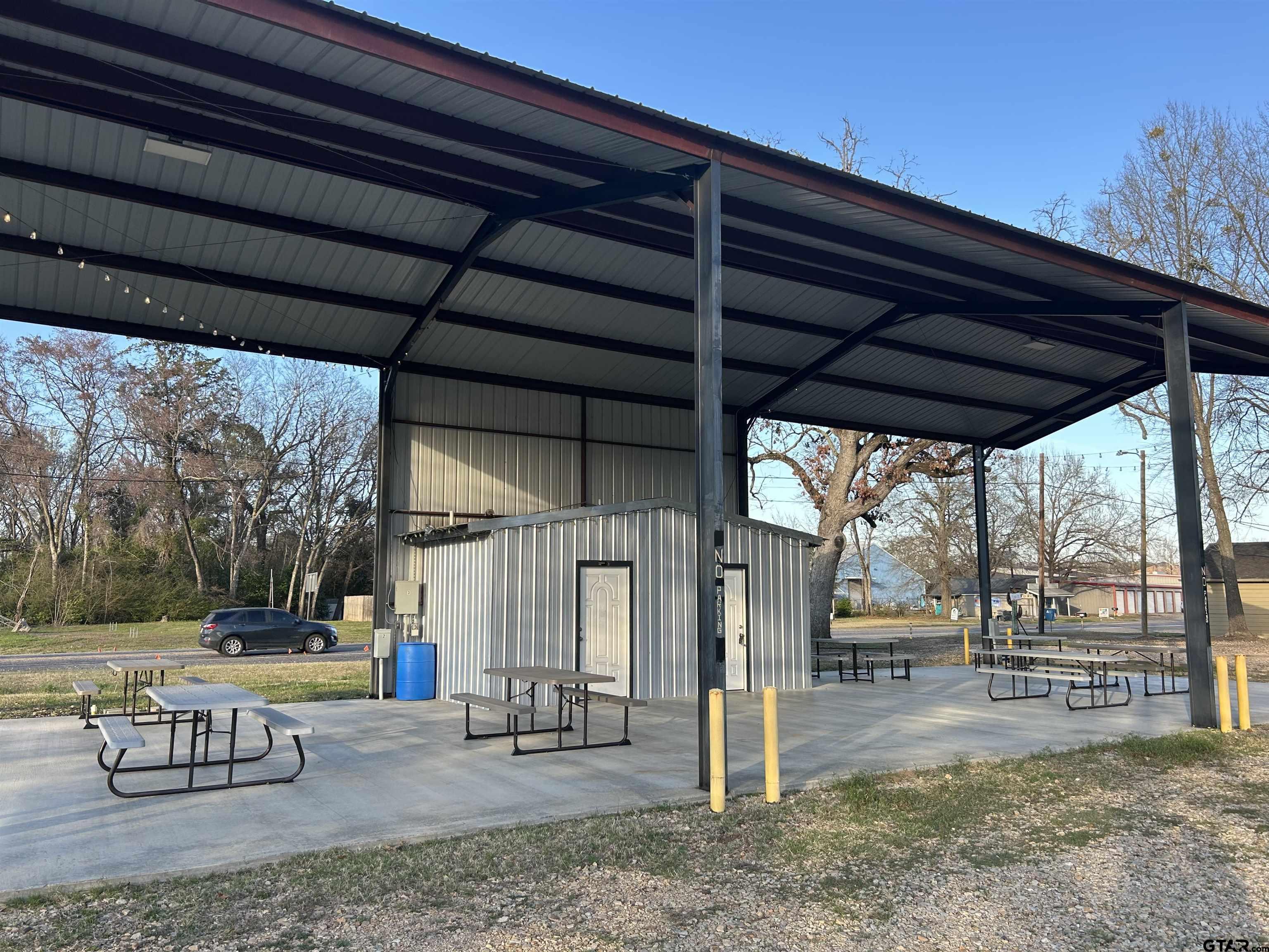 | Come and see the possibilities for this property located in Quitman. Just a few blocks west of the Wood County courthouse square is an existing food truck pavilion for sale. Clark St. Market is located at 200 Clark Street on a busy corner lot with the State Highway 154 just miles away from the active fishing at Lake Fork. The property features an open pavilion with 18ft eaves, a concrete slab measuring 50ftby 30ft. The pavilion is equipped with two (2) large bathrooms with shower drains, overhead lighting, four (4) separately metered electrical plug-in stations, two (2) water supply faucets and four (4) grey water receptacles. With seven (7) outdoor picnic tables and graveled parking spaces accommodating 12-13 vehicles this property is ready for business. The pavilion could be used as-is or closed in for residential or commercial office/retail purposes. Come and see what this opportunity has to offer! FOR LEASE OR FOR SALE. | |