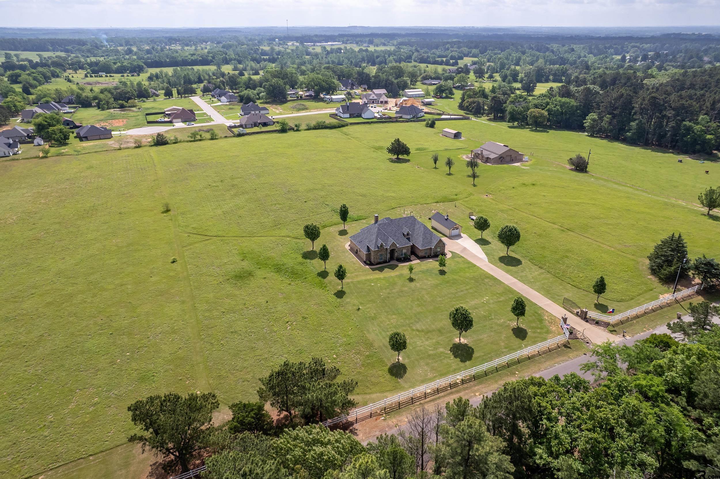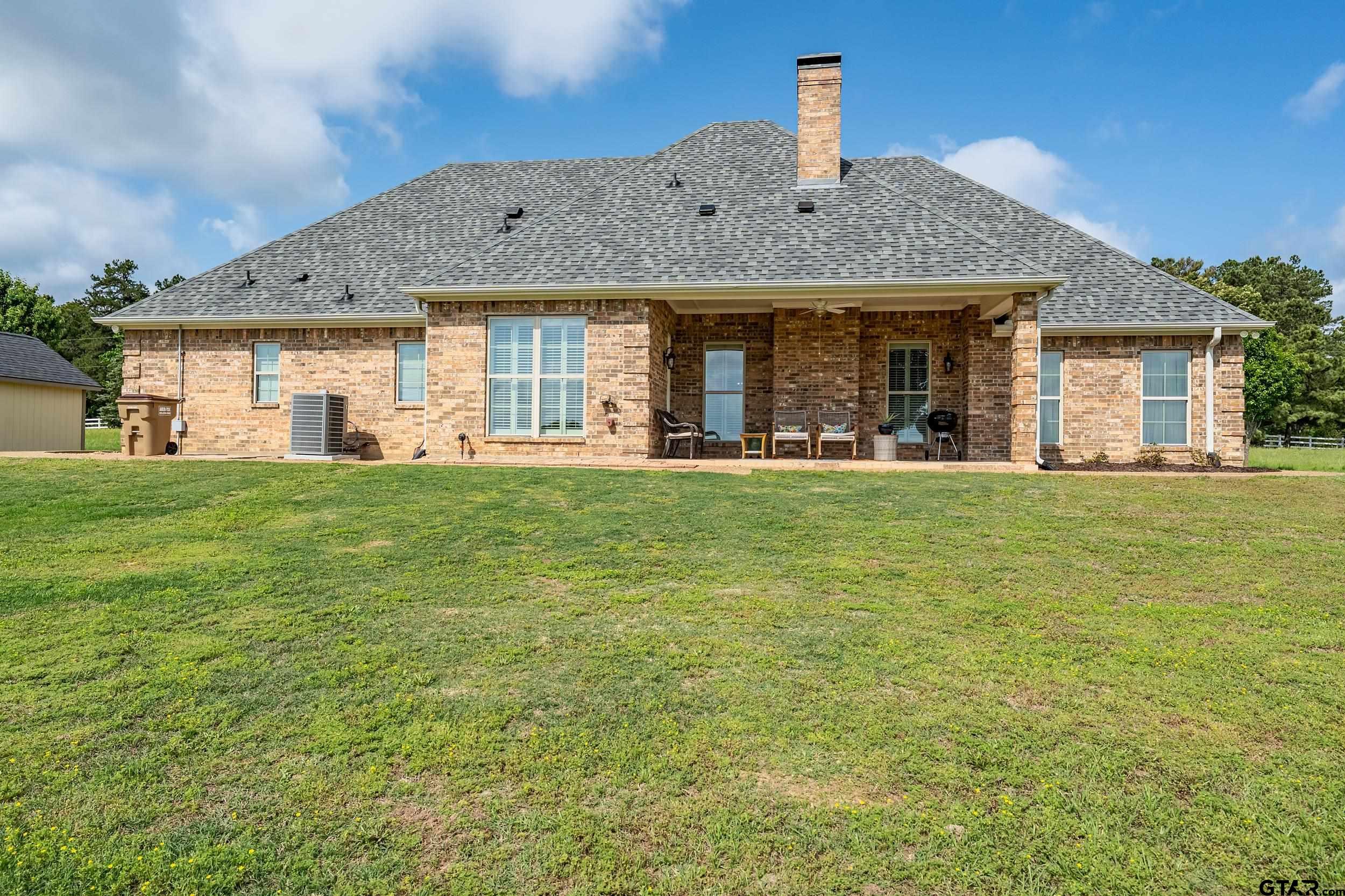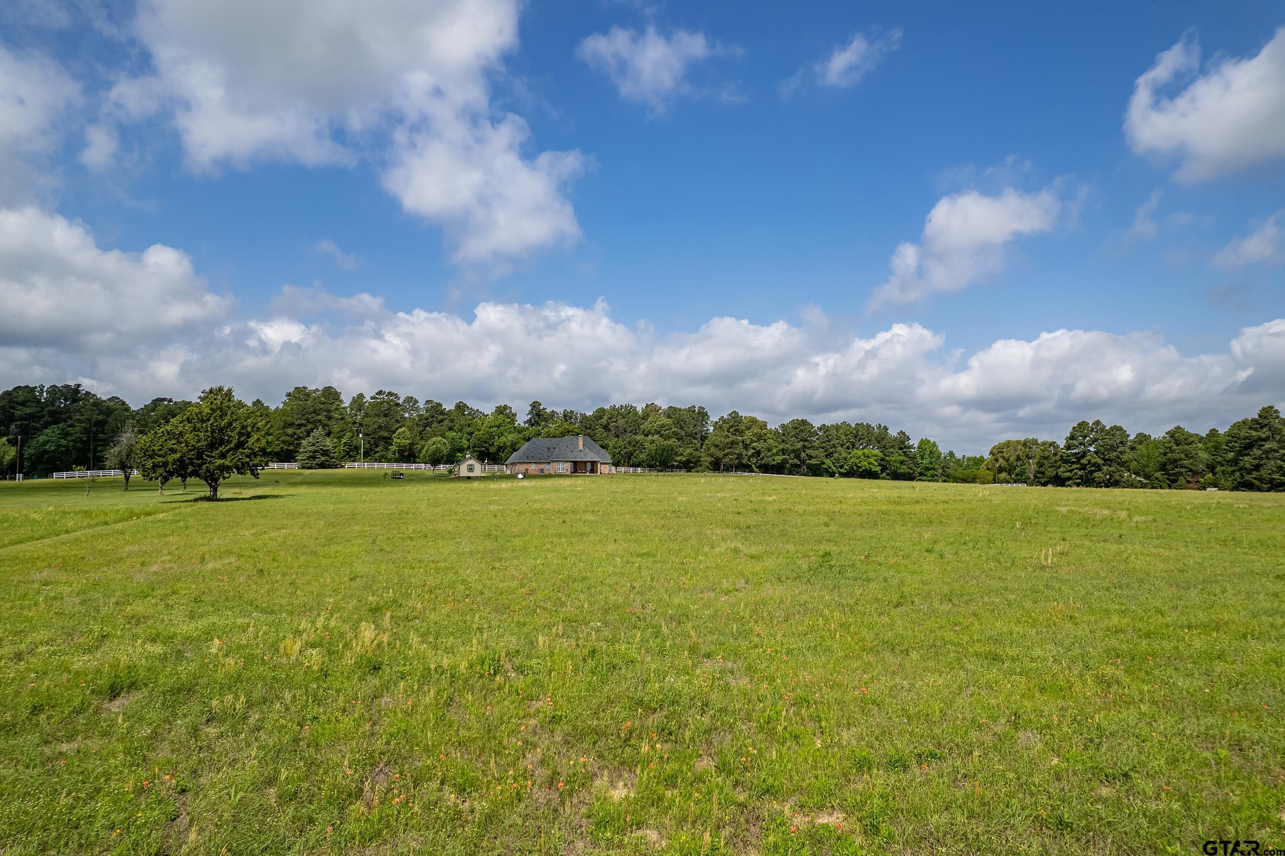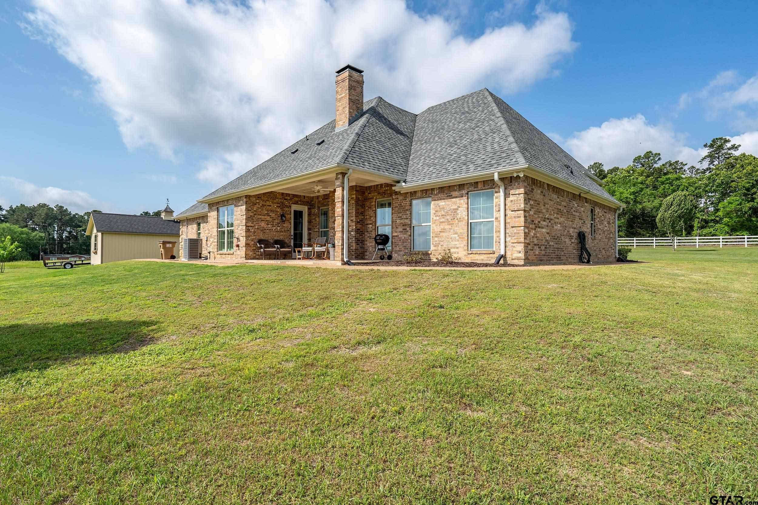 | Immaculate custom home on 6.45 acres in Flint, offering the perfect blend of peaceful country living just minutes from all the conveniences of Tyler. This 3 bedroom, 2 bath home features a 2 car garage plus a shop and versatile flex space, ideal for a second living area, office, or formal dining. Designed with accessibility in mind, the home includes wheelchair accessible doorways and thoughtful layout throughout. Inside, you’ll find gorgeous finishes including travertine floors, tall ceilings, arched doorways, custom trim work, and beautiful ceiling treatments. The inviting family room opens seamlessly to the kitchen and features a gas log fireplace, creating a warm and welcoming atmosphere. The kitchen is well-appointed with granite countertops, island, stainless appliances, pantry, and custom cabinetry, along with plantation shutters on many of the windows. The spacious primary suite offers a double tray ceiling and an ensuite bath with separate vanities, soaking tub, separate shower, water closet, and walk-in closet. Two guest bedrooms share a full, hall bath with double vanity, and storage is abundant throughout. Updates include new interior paint in 2022, new oven 2024, new dishwasher 2026, and new HVAC 2025 (both inside and out.) Additional highlights include a laundry room with sink and built-in desk or coffee bar area, extra concrete for additional parking, security gate, and a welcoming white rail fence with automatic entry. Enjoy the serene setting and beautiful acreage views from the covered back patio, all with no close neighbors for added privacy. Come See! Come Buy! | |
