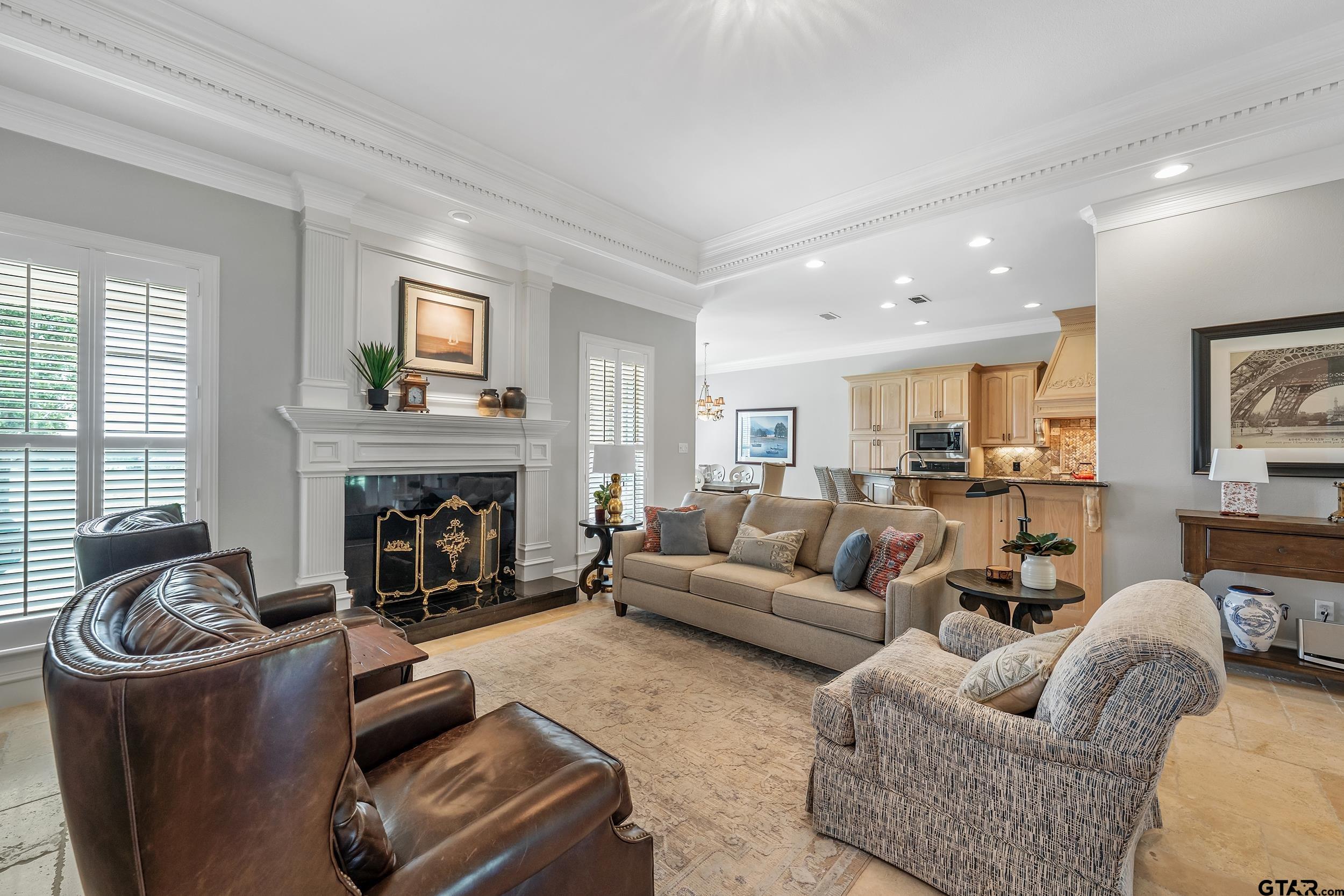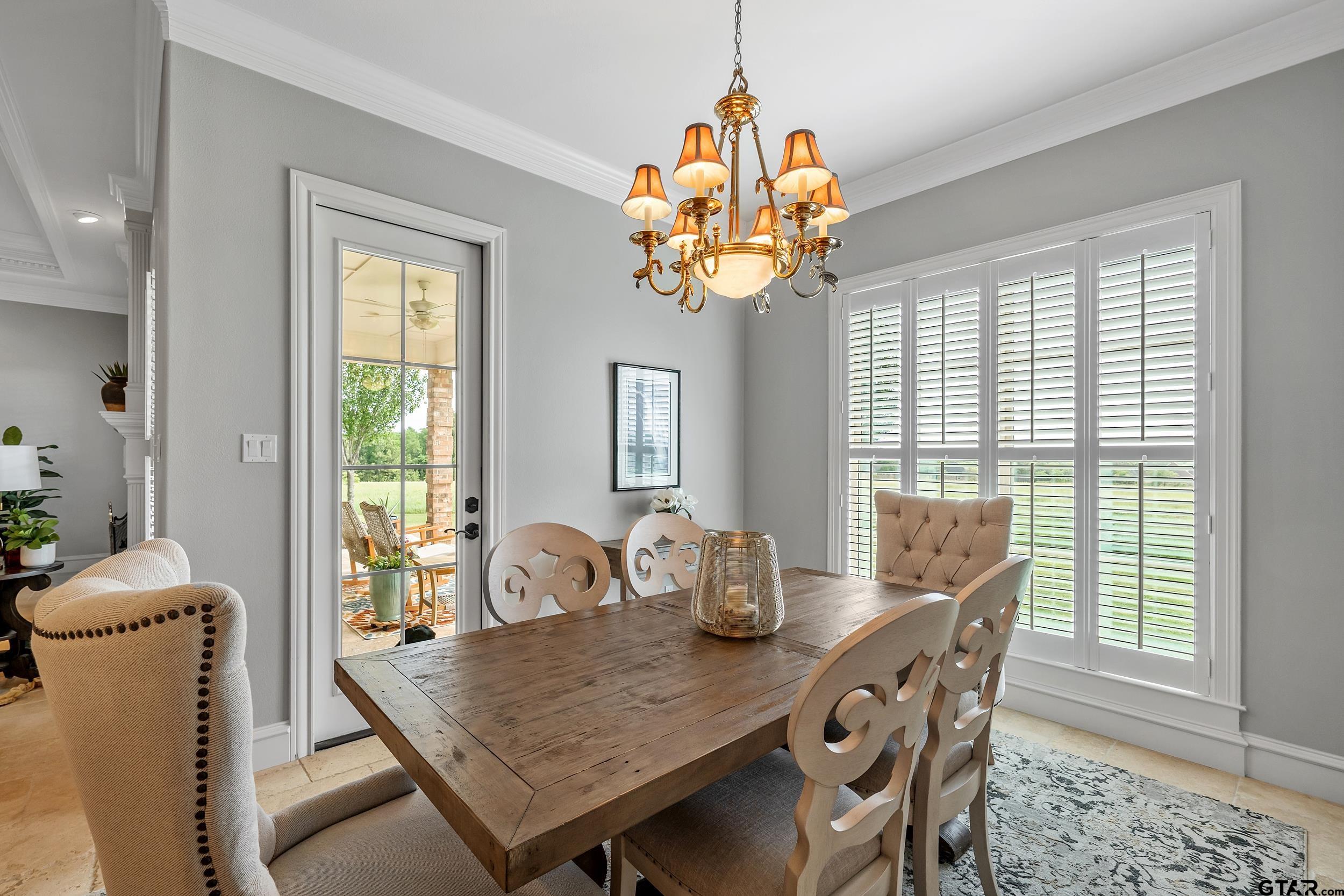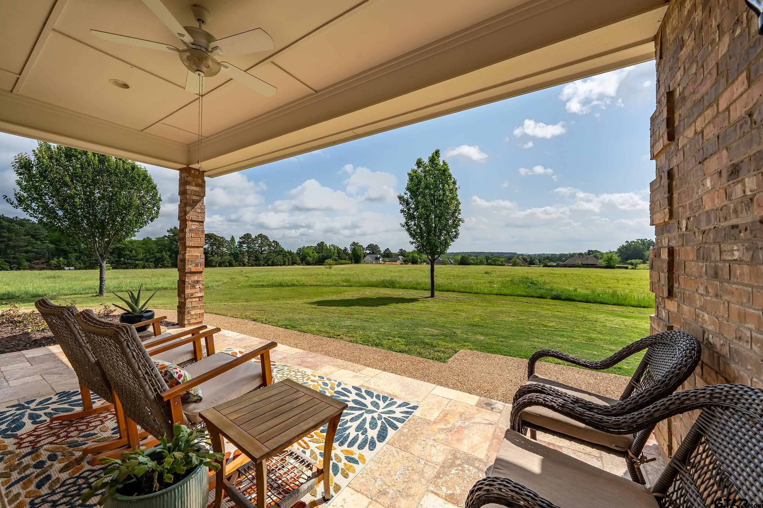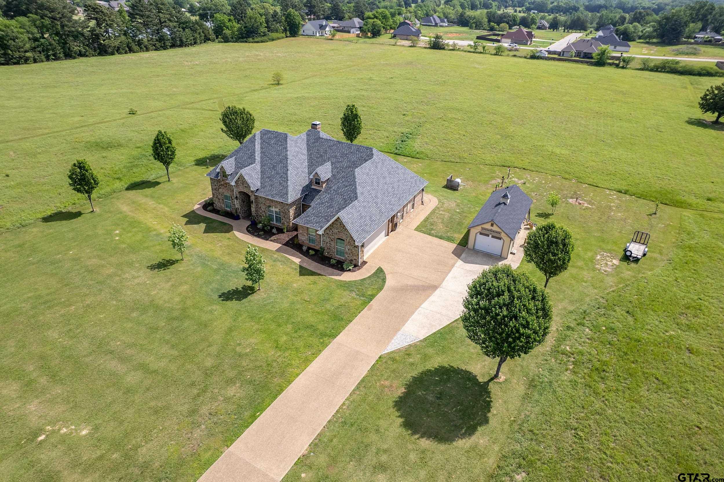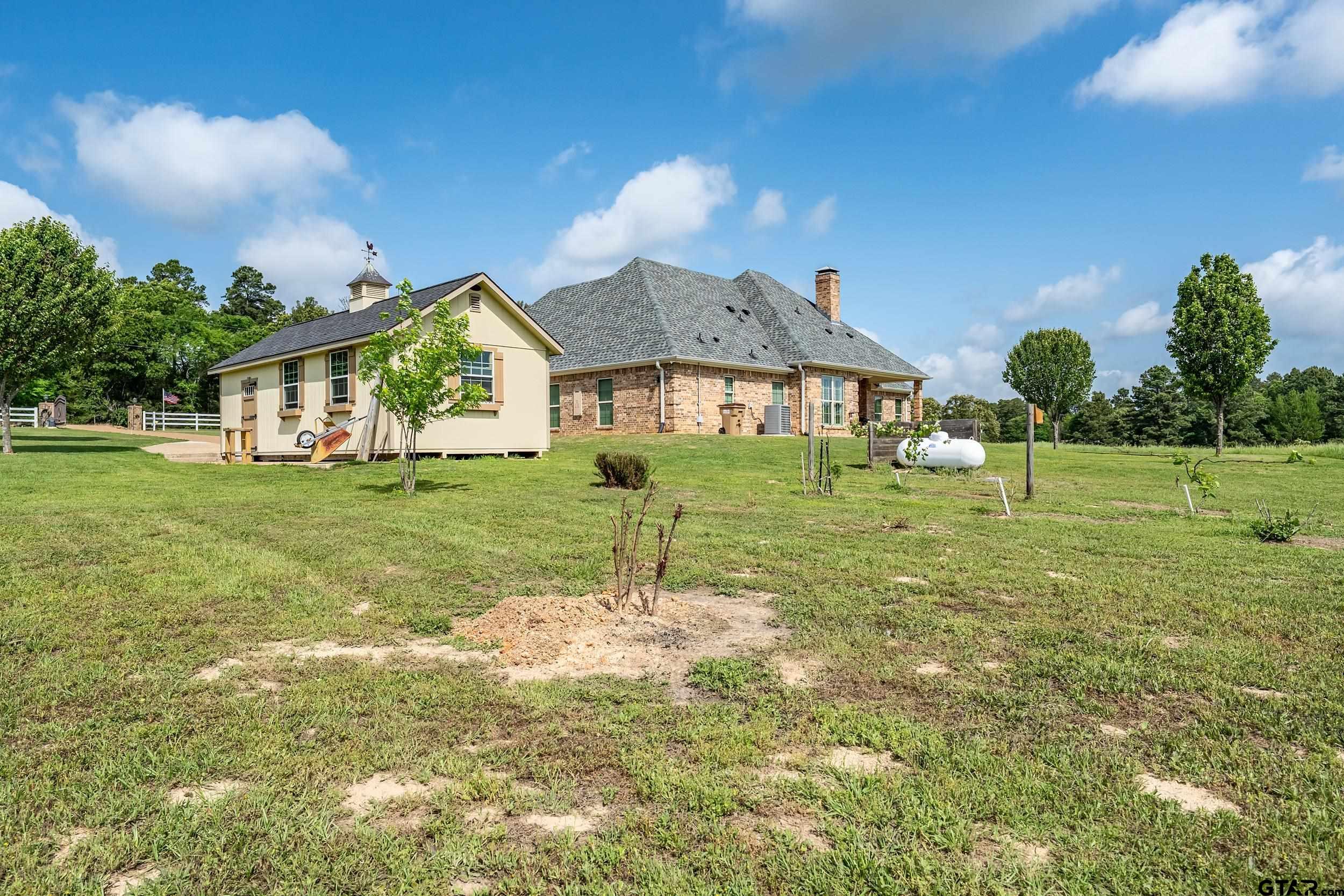 | Immaculate custom home on 6.45 acres in Flint, offering the perfect blend of peaceful country living just minutes from all the conveniences of Tyler. This 3 bedroom, 2 bath home features a 2 car garage plus a shop and versatile flex space, ideal for a second living area, office, or formal dining. Designed with accessibility in mind, the home includes wheelchair accessible doorways and thoughtful layout throughout. Inside, you’ll find gorgeous finishes including travertine floors, tall ceilings, arched doorways, custom trim work, and beautiful ceiling treatments. The inviting family room opens seamlessly to the kitchen and features a gas log fireplace, creating a warm and welcoming atmosphere. The kitchen is well-appointed with granite countertops, island, stainless appliances, pantry, and custom cabinetry, along with plantation shutters on many of the windows. The spacious primary suite offers a double tray ceiling and an ensuite bath with separate vanities, soaking tub, separate shower, water closet, and walk-in closet. Two guest bedrooms share a full, hall bath with double vanity, and storage is abundant throughout. Updates include new interior paint in 2022, new oven 2024, new dishwasher 2026, and new HVAC 2025 (both inside and out.) Additional highlights include a laundry room with sink and built-in desk or coffee bar area, extra concrete for additional parking, security gate, and a welcoming white rail fence with automatic entry. Enjoy the serene setting and beautiful acreage views from the covered back patio, all with no close neighbors for added privacy. Come See! Come Buy! | |
