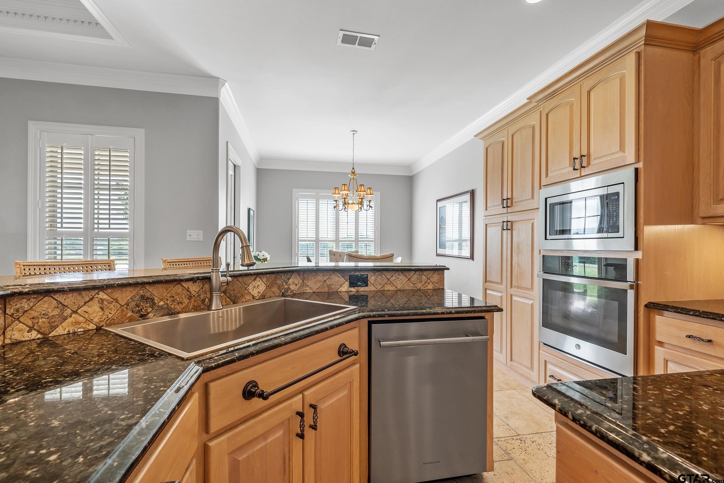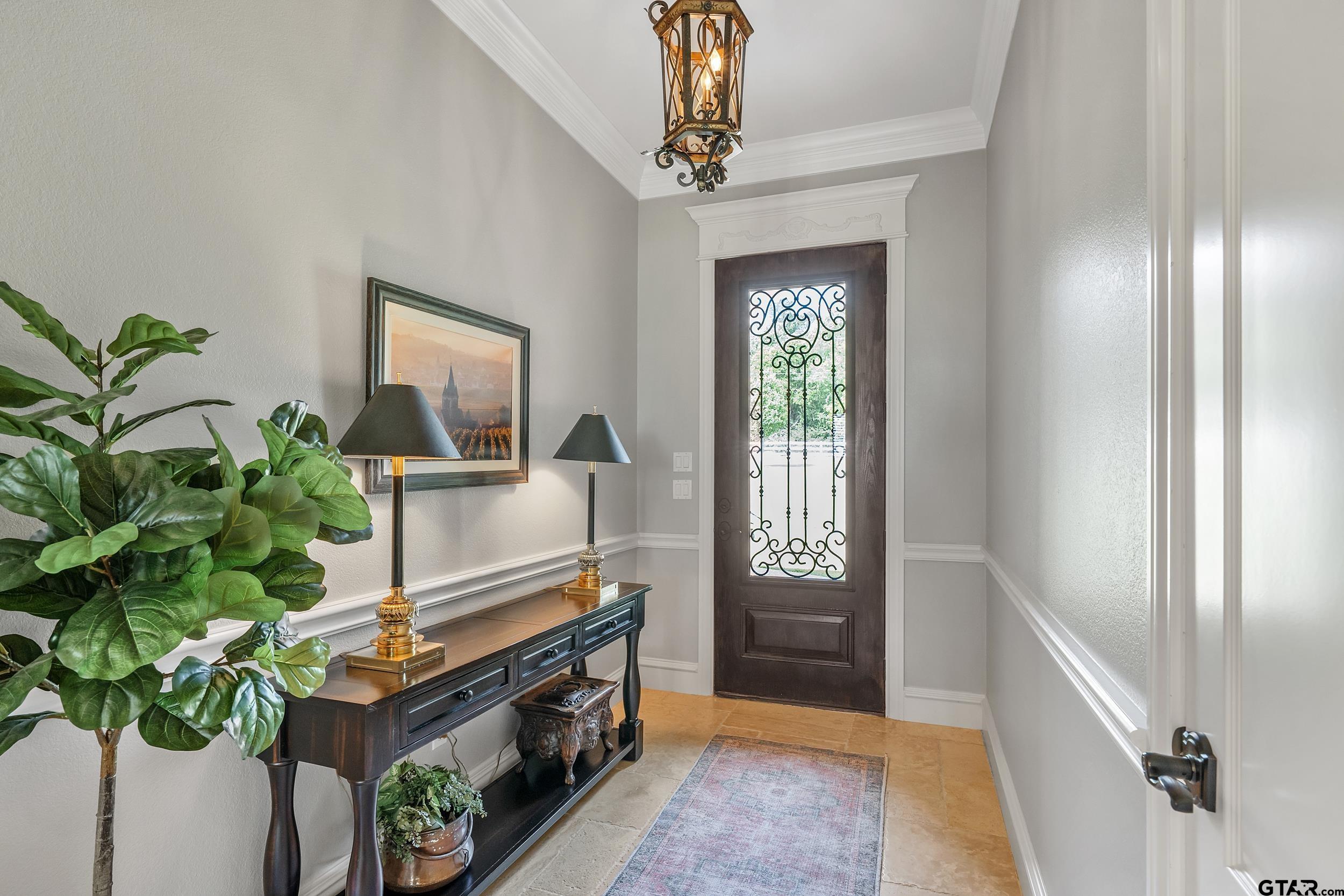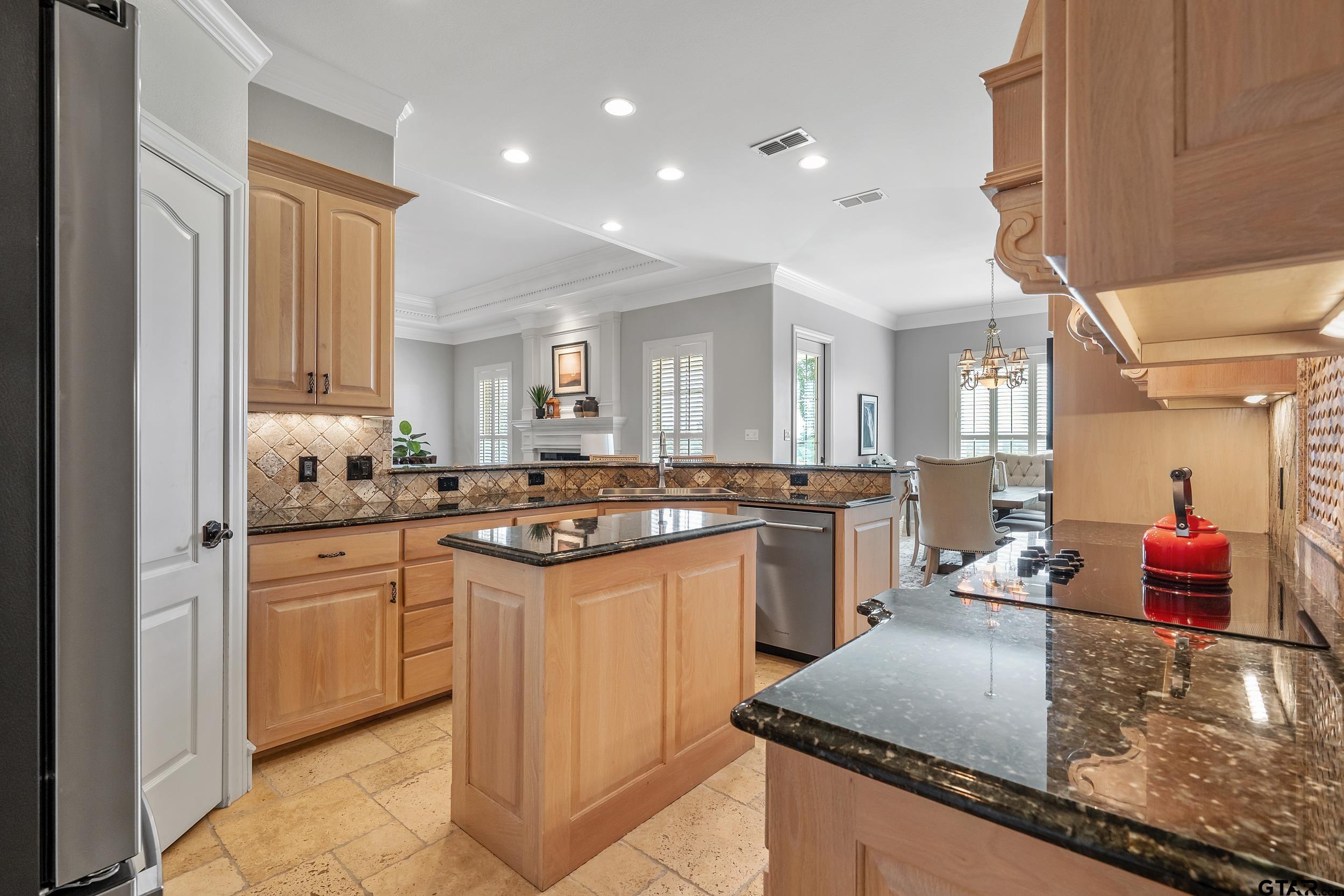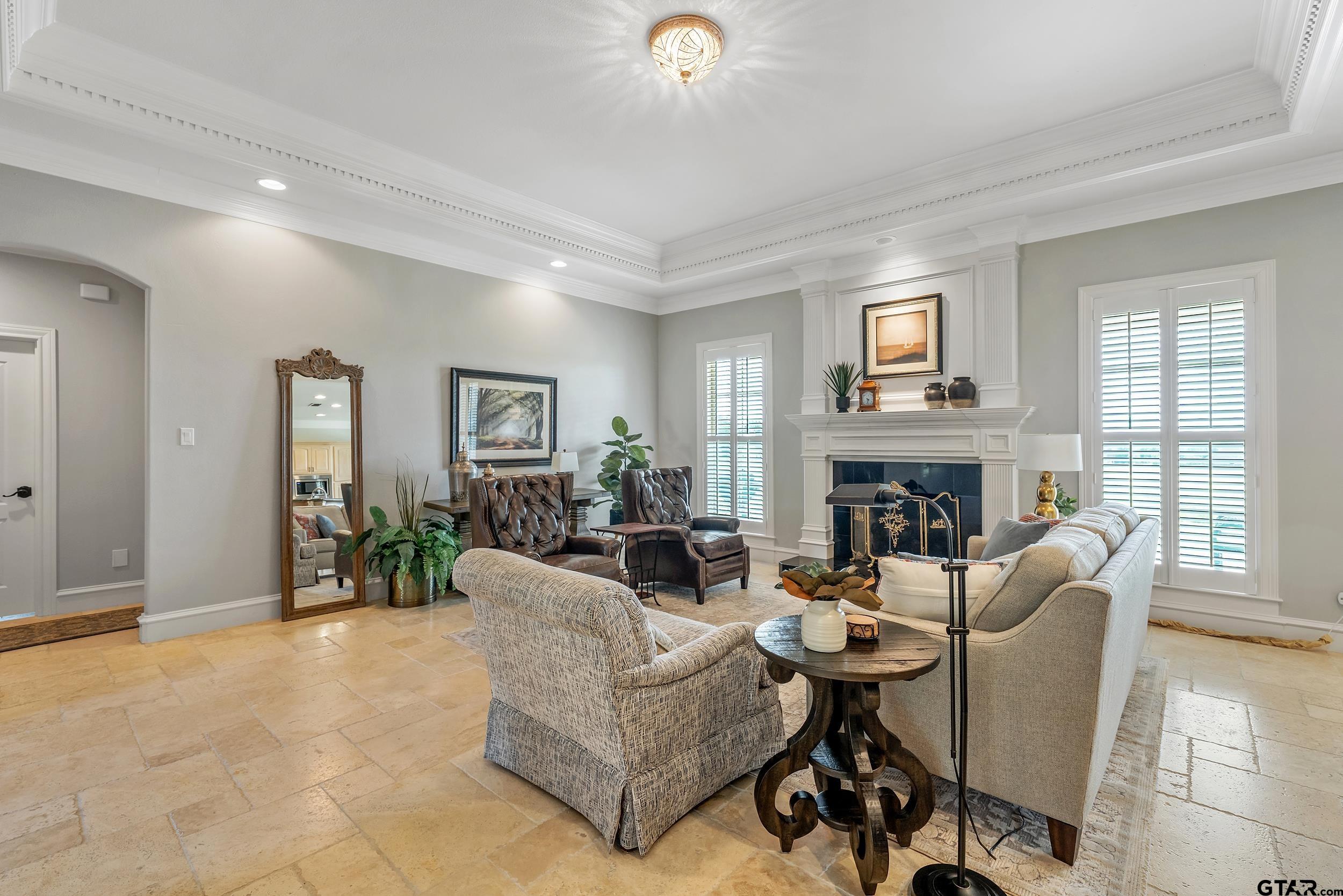| Immaculate custom home on 6.45 acres in Flint, offering the perfect blend of peaceful country living just minutes from all the conveniences of Tyler. This 3 bedroom, 2 bath home features a 2 car garage plus a shop and versatile flex space, ideal for a second living area, office, or formal dining. Designed with accessibility in mind, the home includes wheelchair accessible doorways and thoughtful layout throughout. Inside, you’ll find gorgeous finishes including travertine floors, tall ceilings, arched doorways, custom trim work, and beautiful ceiling treatments. The inviting family room opens seamlessly to the kitchen and features a gas log fireplace, creating a warm and welcoming atmosphere. The kitchen is well-appointed with granite countertops, island, stainless appliances, pantry, and custom cabinetry, along with plantation shutters on many of the windows. The spacious primary suite offers a double tray ceiling and an ensuite bath with separate vanities, soaking tub, separate shower, water closet, and walk-in closet. Two guest bedrooms share a full, hall bath with double vanity, and storage is abundant throughout. Updates include new interior paint in 2022, new oven 2024, new dishwasher 2026, and new HVAC 2025 (both inside and out.) Additional highlights include a laundry room with sink and built-in desk or coffee bar area, extra concrete for additional parking, security gate, and a welcoming white rail fence with automatic entry. Enjoy the serene setting and beautiful acreage views from the covered back patio, all with no close neighbors for added privacy. Come See! Come Buy! | |