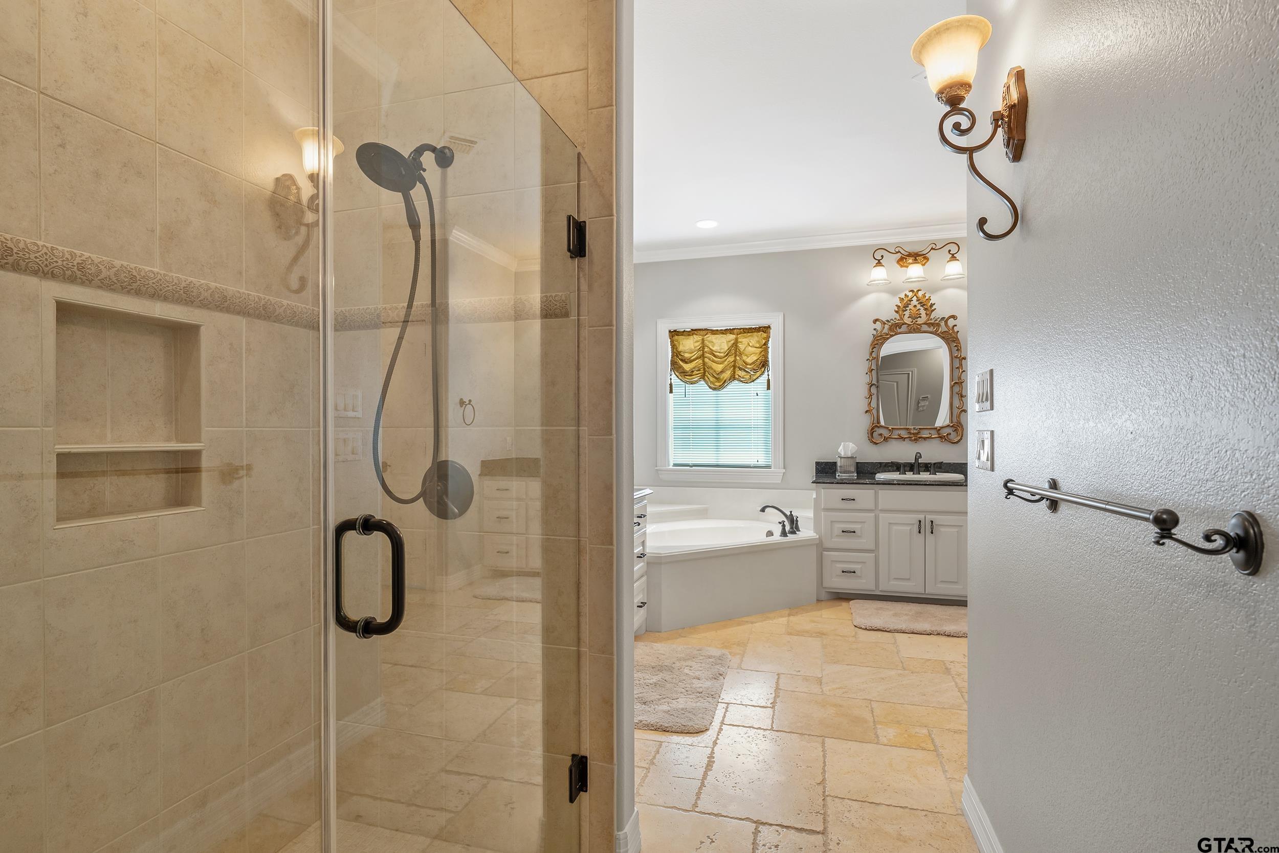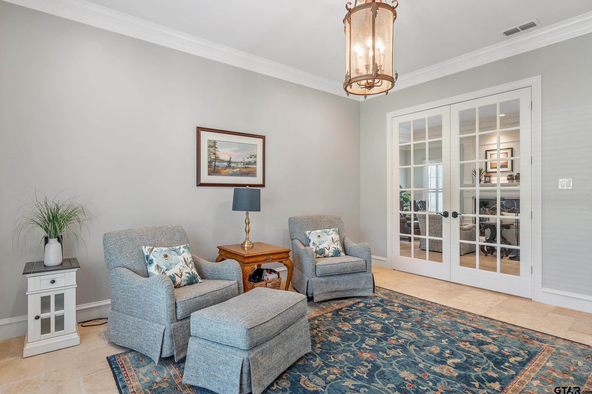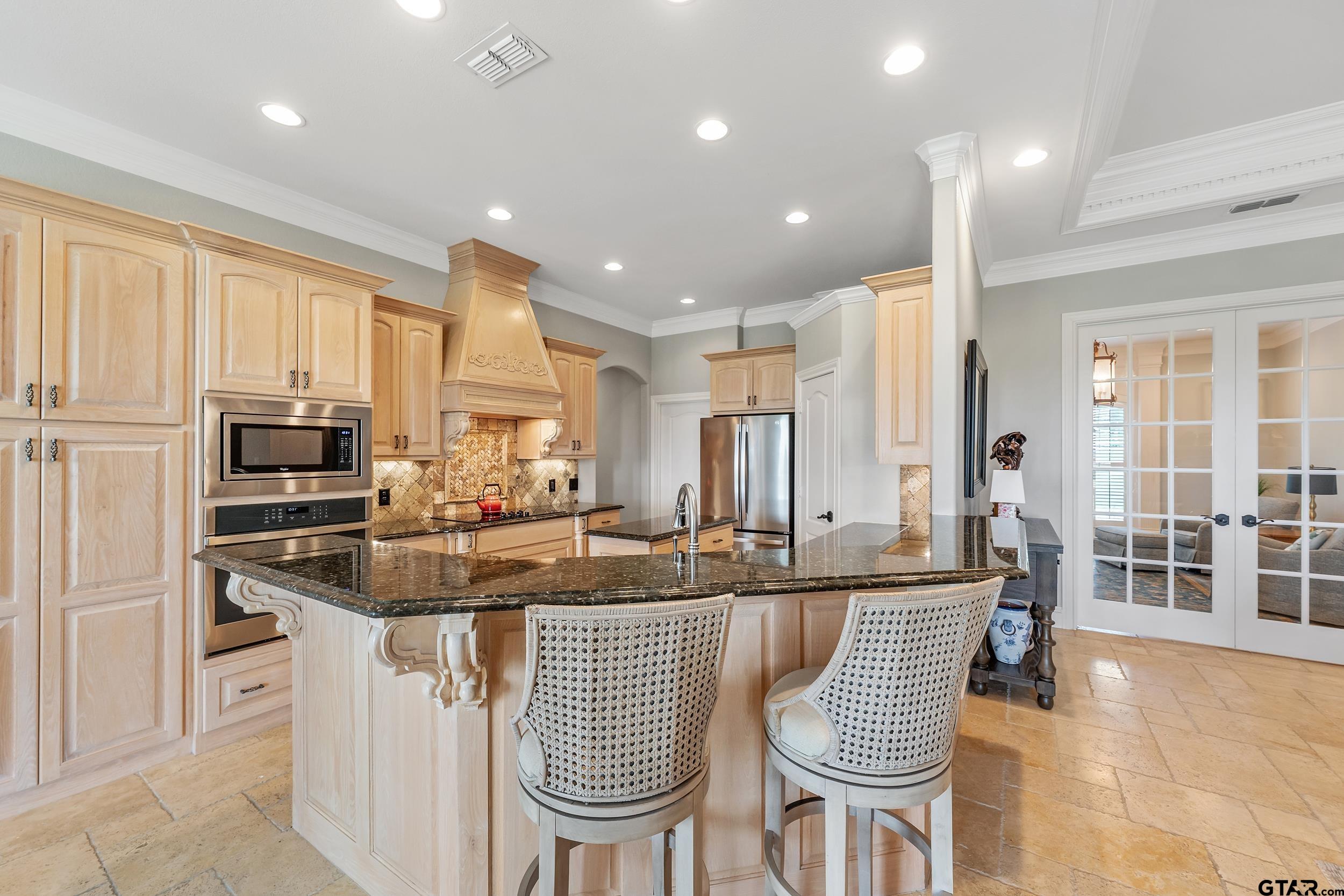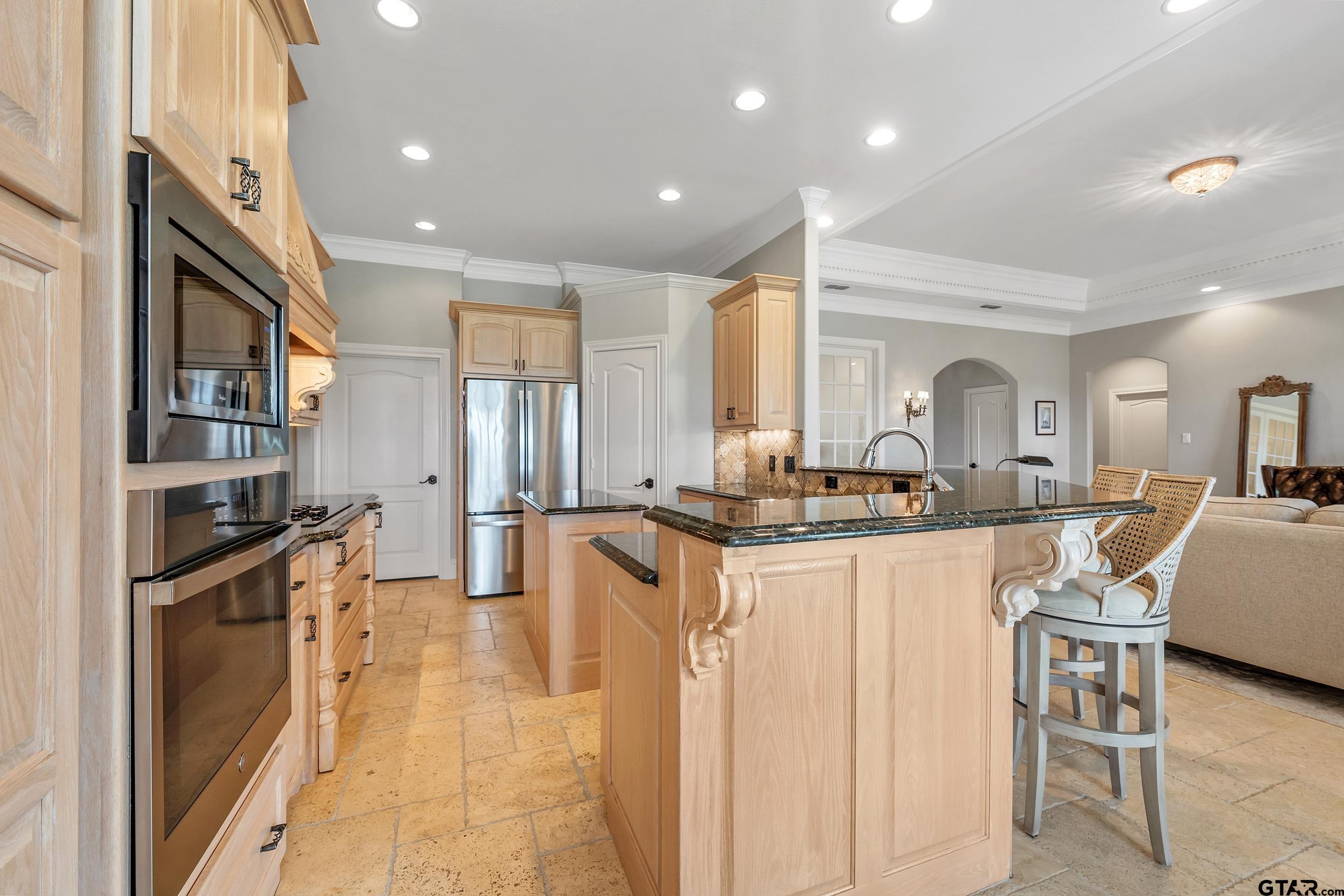 | Immaculate custom home on 6.45 acres in Flint, offering the perfect blend of peaceful country living just minutes from all the conveniences of Tyler. This 3 bedroom, 2 bath home features a 2 car garage plus a shop and versatile flex space, ideal for a second living area, office, or formal dining. Designed with accessibility in mind, the home includes wheelchair accessible doorways and thoughtful layout throughout. Inside, you’ll find gorgeous finishes including travertine floors, tall ceilings, arched doorways, custom trim work, and beautiful ceiling treatments. The inviting family room opens seamlessly to the kitchen and features a gas log fireplace, creating a warm and welcoming atmosphere. The kitchen is well-appointed with granite countertops, island, stainless appliances, pantry, and custom cabinetry, along with plantation shutters on many of the windows. The spacious primary suite offers a double tray ceiling and an ensuite bath with separate vanities, soaking tub, separate shower, water closet, and walk-in closet. Two guest bedrooms share a full, hall bath with double vanity, and storage is abundant throughout. Updates include new interior paint in 2022, new oven 2024, new dishwasher 2026, and new HVAC 2025 (both inside and out.) Additional highlights include a laundry room with sink and built-in desk or coffee bar area, extra concrete for additional parking, security gate, and a welcoming white rail fence with automatic entry. Enjoy the serene setting and beautiful acreage views from the covered back patio, all with no close neighbors for added privacy. Come See! Come Buy! | |