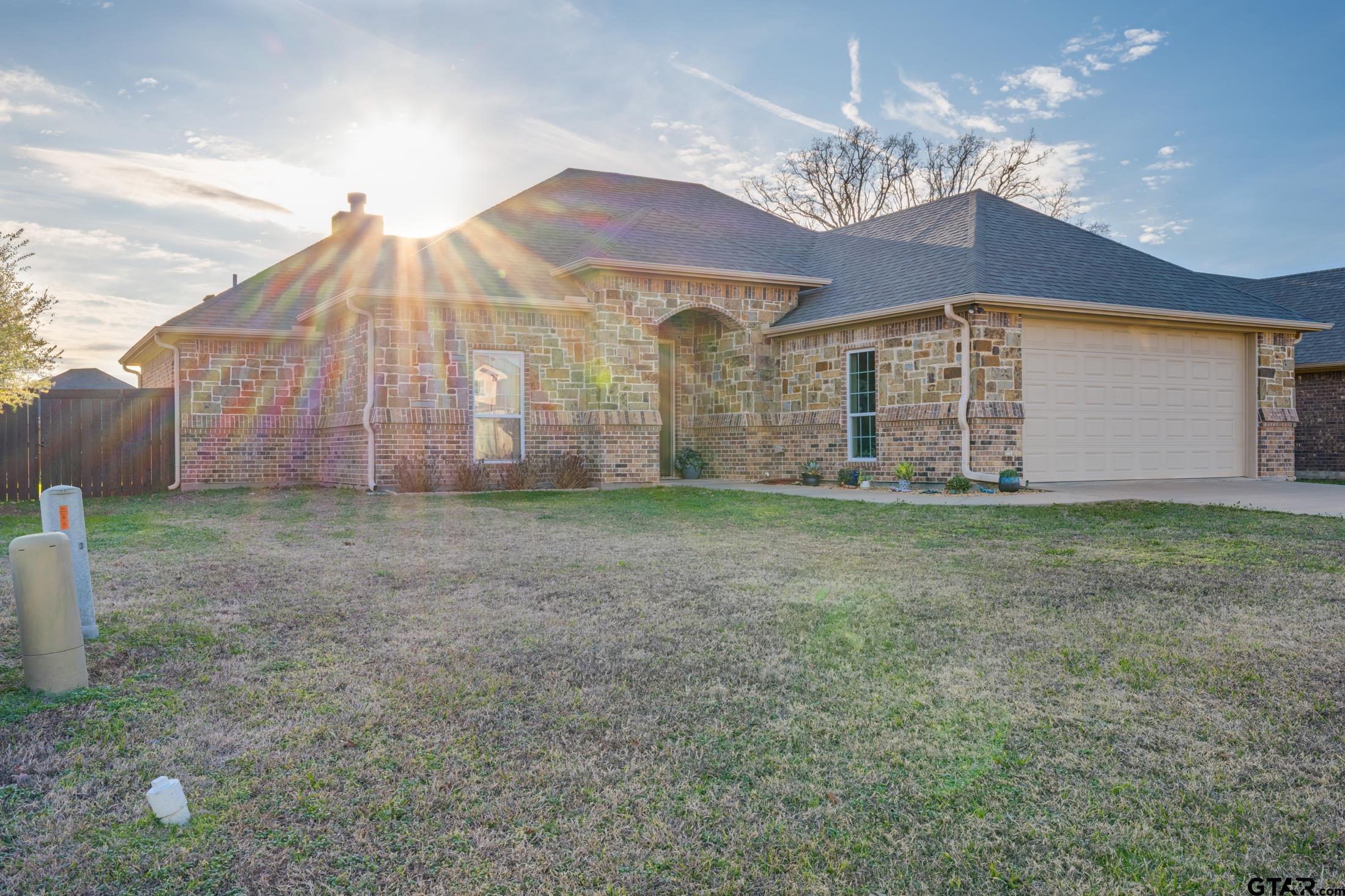 | Immaculate brick and stone home in the Rock Creek subdivision of Sulphur Springs. Built in 2018, this stunning 3 bedroom, 2 bath home combines modern design with peaceful views in a desirable newer subdivision close to schools and shopping. The thoughtfully designed floor plan features an open concept layout for the living, dining and kitchen. The kitchen features a large island granite countertops pantry and custom cabintery. The master is separate from the two extra bedrooms for privacy. Wood grain tile floors make for a great look and durability. The living room features a wood burning fireplace for cozy nights in the winter. The backyard is fully fenced with a vegetable planter ready for your gardening! Spacious 2 car garage with a plug for a generator add to the convenience of this property. Come take a look at this lovely home! No showings until May 3, 2026. | |