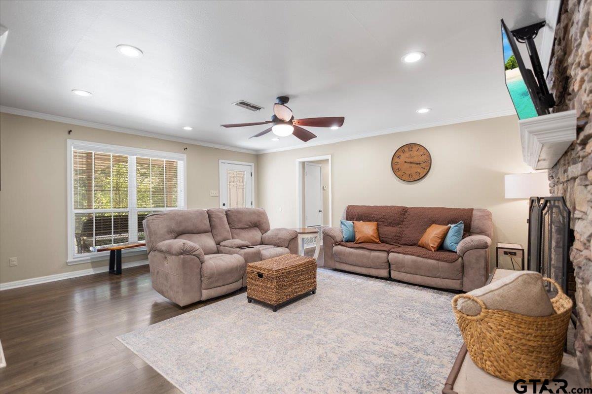 | Welcome home! Settle in and enjoy the good life. This 3-bedroom, 2-bath home offers 1,778 square feet with a comfortable layout, a relaxed feel, and plenty of space to spread out. The generous lot gives you breathing room without losing that neighborhood feel. Inside, the split primary suite gives you a little extra privacy, while the beautiful rock fireplace adds warmth and character to the main living area. The kitchen is nice and roomy, featuring an island that works great for meal prep, casual bites, or catching up with friends. There’s also a large dining room that could easily double as a playroom or second den, plus a wall of windows that brings in natural light and overlooks the backyard. You’ll also find a spacious laundry room and a versatile office/storage building out back, giving you extra room for hobbies, work, or weekend projects. The backyard has already been improved with a newer retaining wall and French drains, and there’s still plenty of room to create the pool setup you’ve been dreaming about. A circle drive in front adds convenience and curb appeal, while the back patio is ready for grilling, relaxing, and enjoying East Texas evenings. Set in Hideaway’s private, gated golf course and lake community, this home puts recreation close to home and Lindale’s shopping and dining just a short drive away, including local favorites like The Cannery and LaCascio’s Scratch Italian. If you’ve been looking for a place that feels easy, functional, and full of potential, this one is worth a look. | |