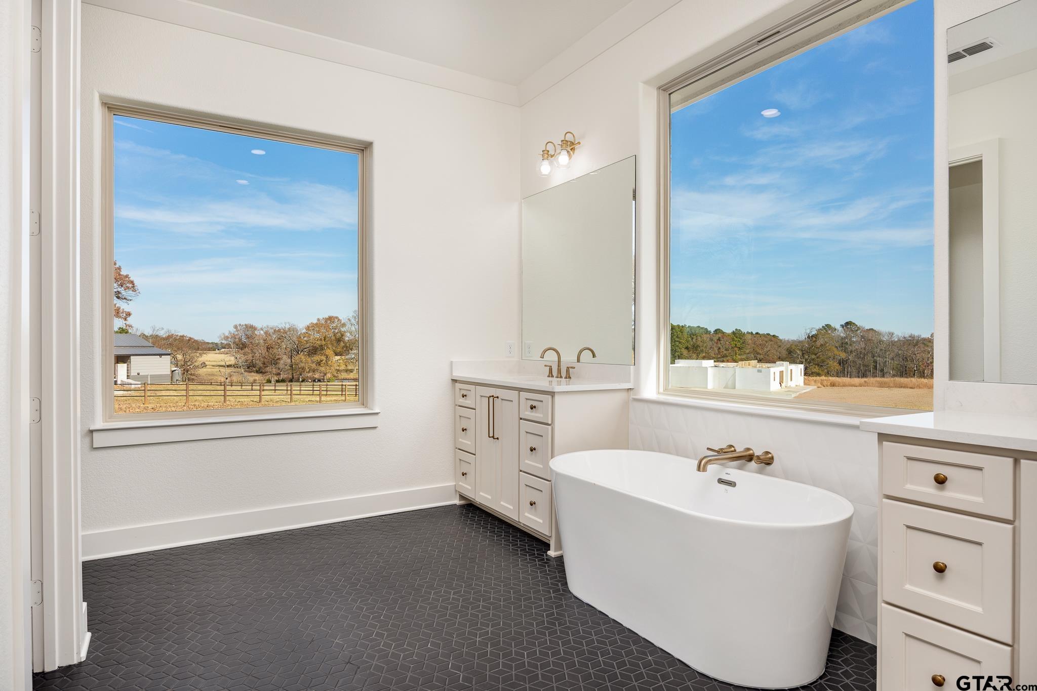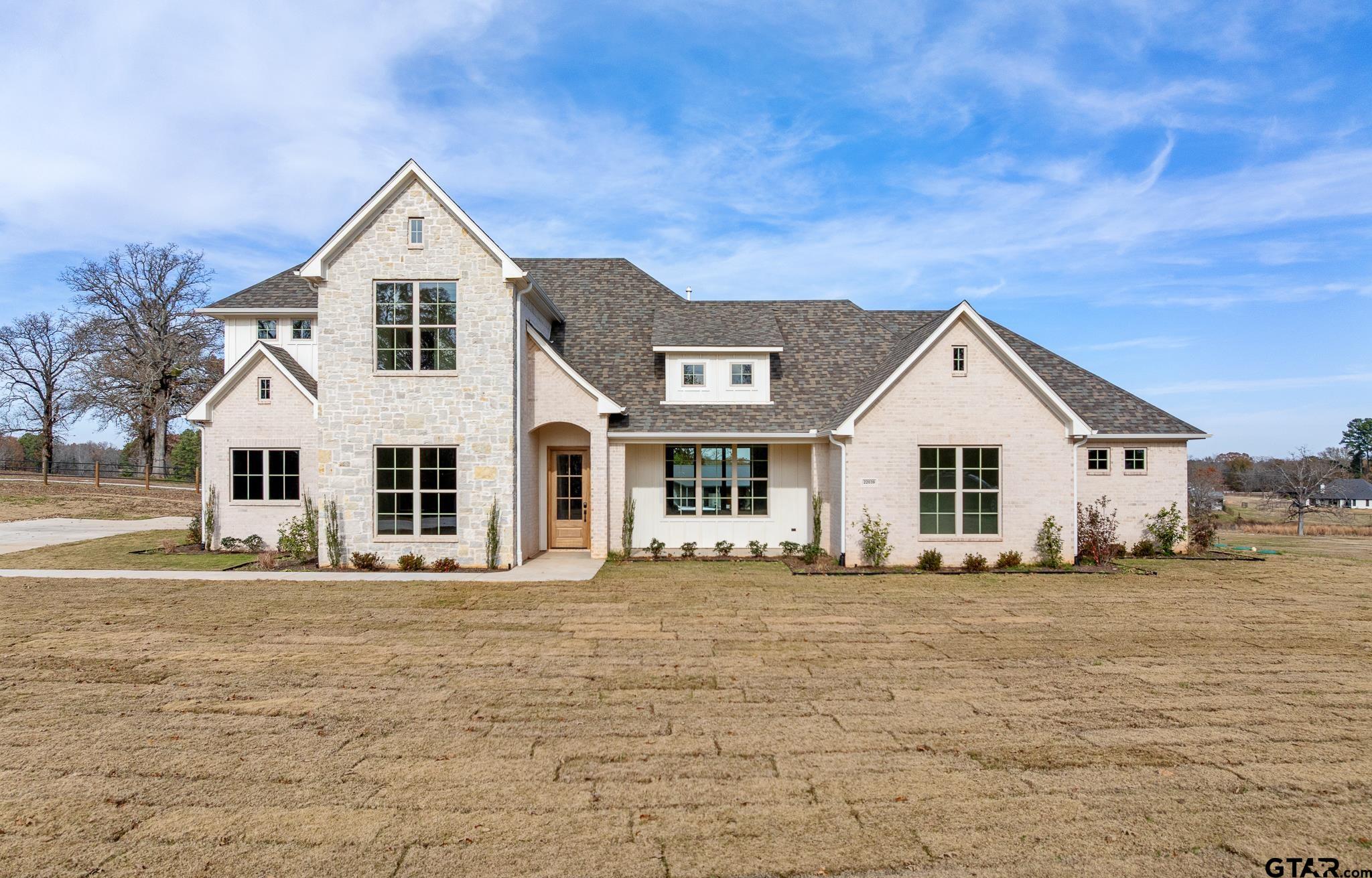 | Welcome to this exceptional new construction home in a beautiful country-style subdivision on over .7 acres with breathtaking scenic views. Offering 3,328 square feet of thoughtfully designed living space, this home blends modern comfort with timeless country charm. The main level features a beautiful kitchen with a hidden pantry, a spacious primary suite with an absolutely stunning bathroom and oversized closet, along with an additional downstairs bedroom, private office, and and elegant half bath. The open layout captures natural light and showcases the peaceful acreage views from nearly every angle. A beautiful wide staircase leads upstairs to a generous bonus room, two additional bedrooms, and a full bath--each space offering more incredible views of the surrounding landscape. With 4 bedrooms, 3.5 baths, an office, and a bonus/flex room, this home provides flexibility for family living, work from home or entertaining, all in a serene country setting just a short drive from the rapidly growing Tyler, TX. | |