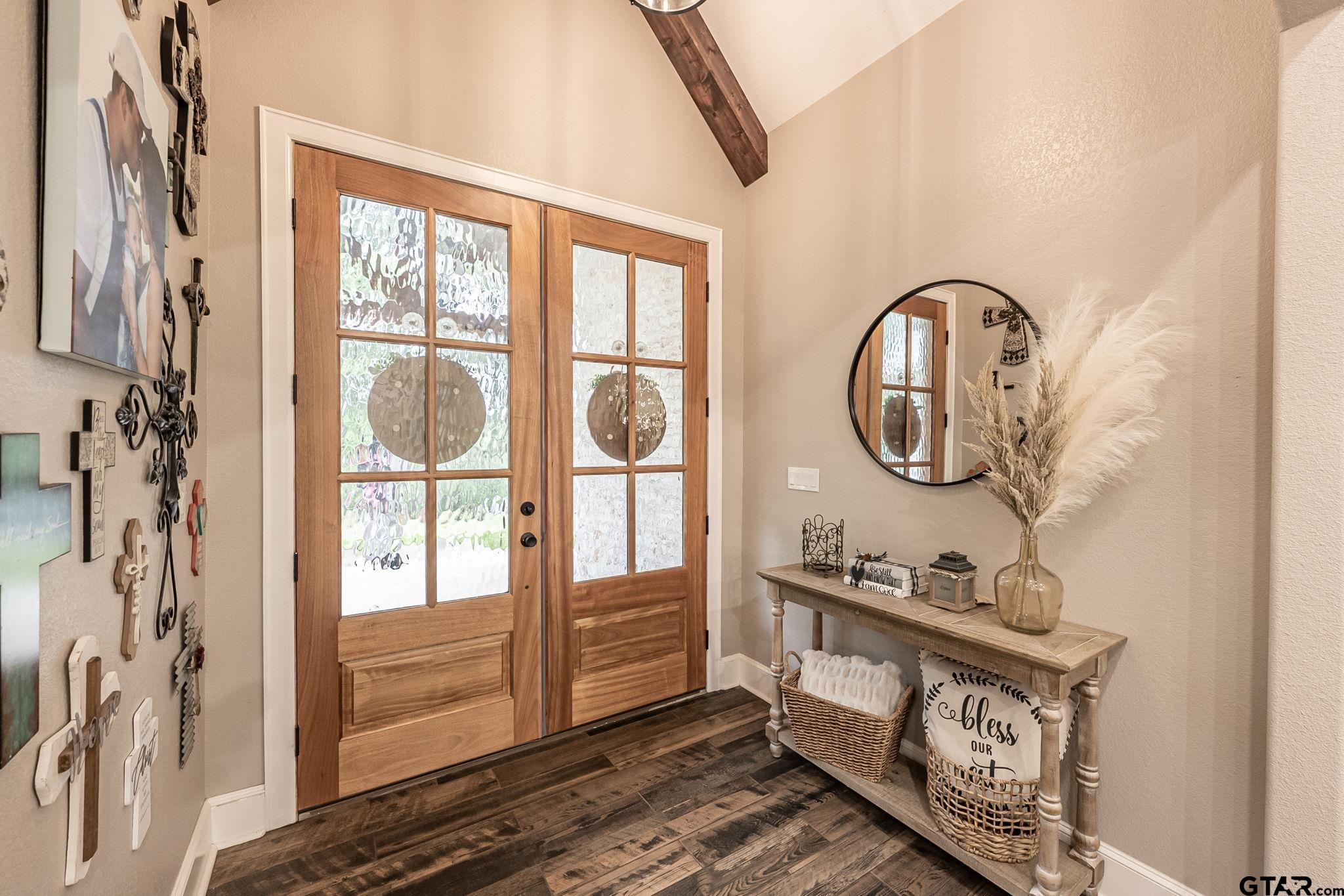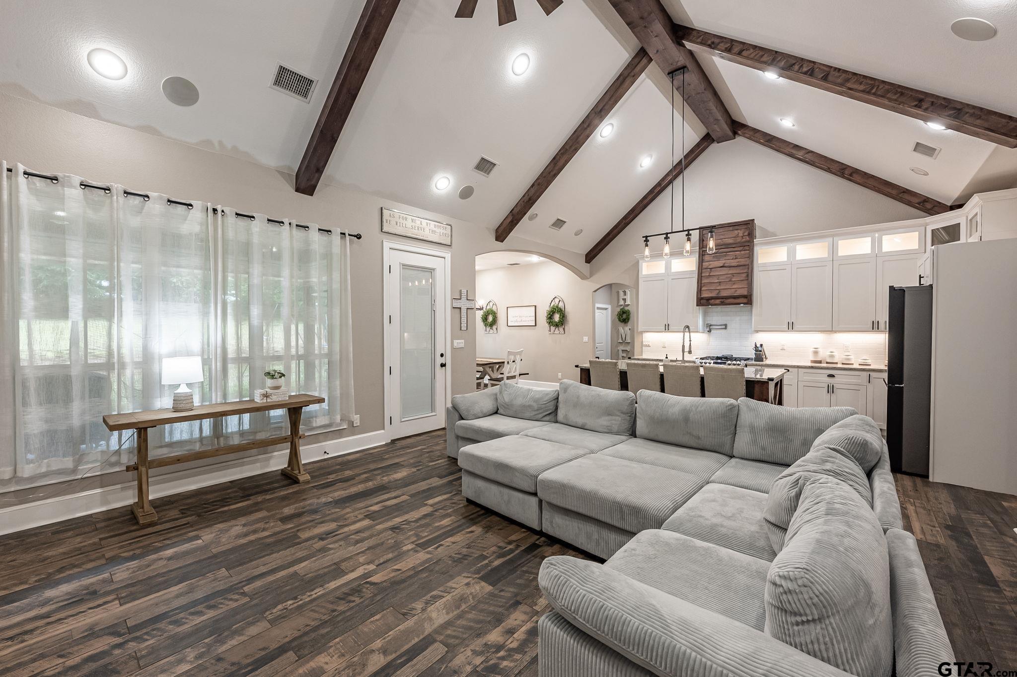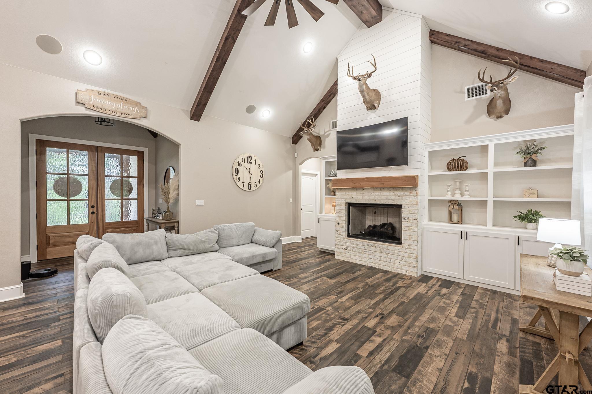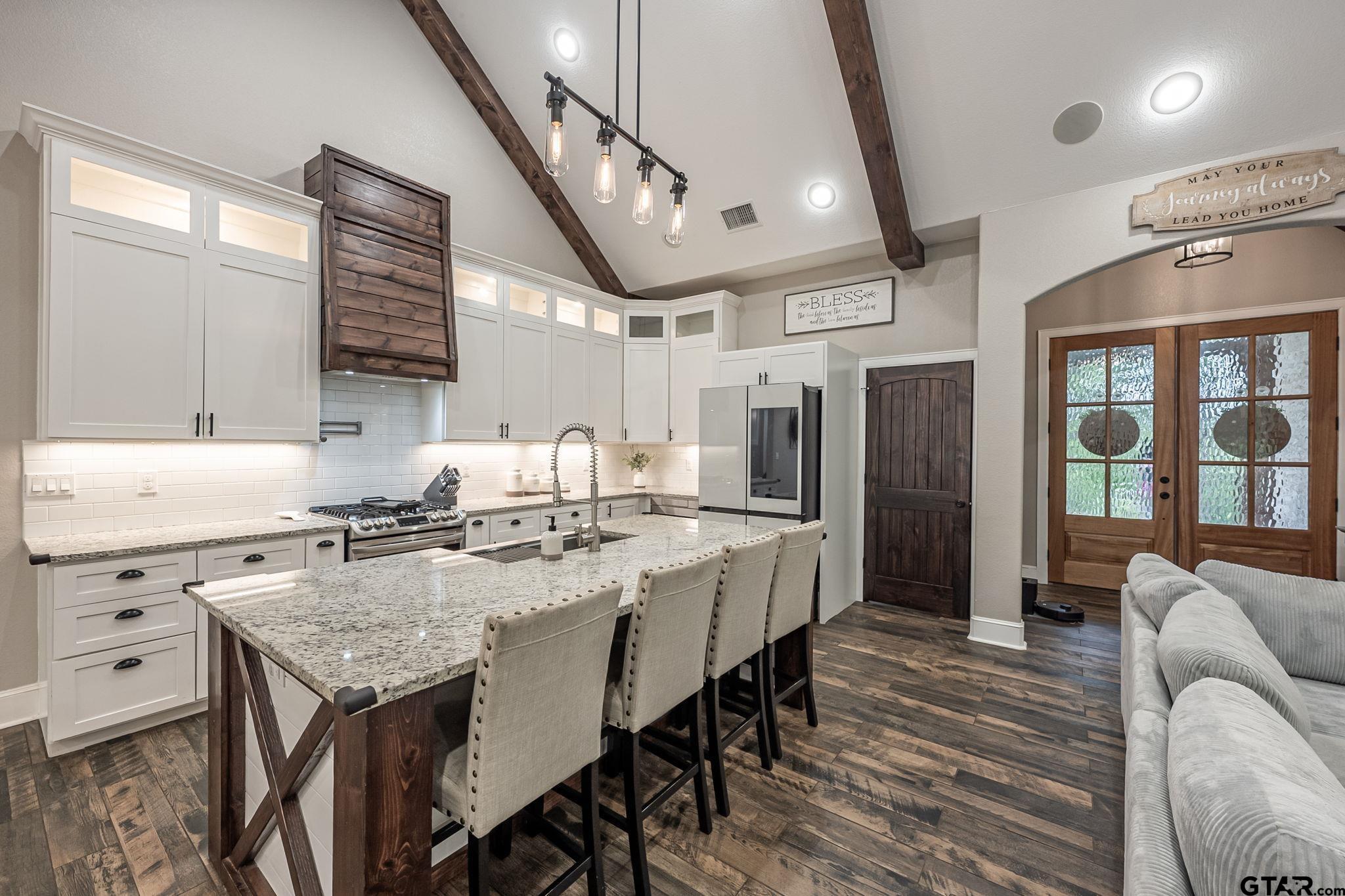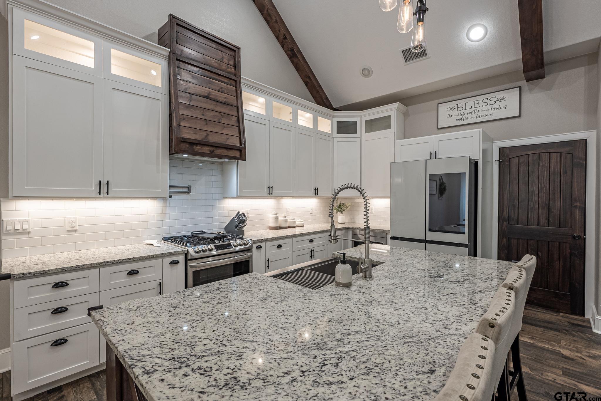 | Luxury Lake Life Living with 40x50 Shop! If you have been looking for a place with space, comfort, this one feels like home. Sitting on over 2 acres with a view of Lake Tyler East, this 4 bedroom, 3.5 bathroom home also includes a flexible bonus room that you can make your own - whether that is a home office, extra living room, classroom, craft room, the possibilities are endless. Inside, the open concept layout makes everything feel connected and easy. The living room, with brick fireplace, large windows, and built-ins, flows into a spacious dining room and kitchen, so it's great for everyday life or having people over. You'll also appreciate the oversized pantry- it just makes staying organized that much easier. Some kitchen features are custom cabinets, granite counter tops and farm sink. Primary bedroom is separate from the three guest bedrooms. Primary bedroom has a private en-suite bathroom attached. En-suite bathroom has separate vanities, shower with subway tiles and modern fixtures, separate tub, and walk-in closet. Step outside and you've got a covered front porch, great for rocking chairs, and a covered back patio with outdoor kitchen, giving you great spots to relax and enjoy the outdoors year-round. All you need to make this house a home is YOU! | |